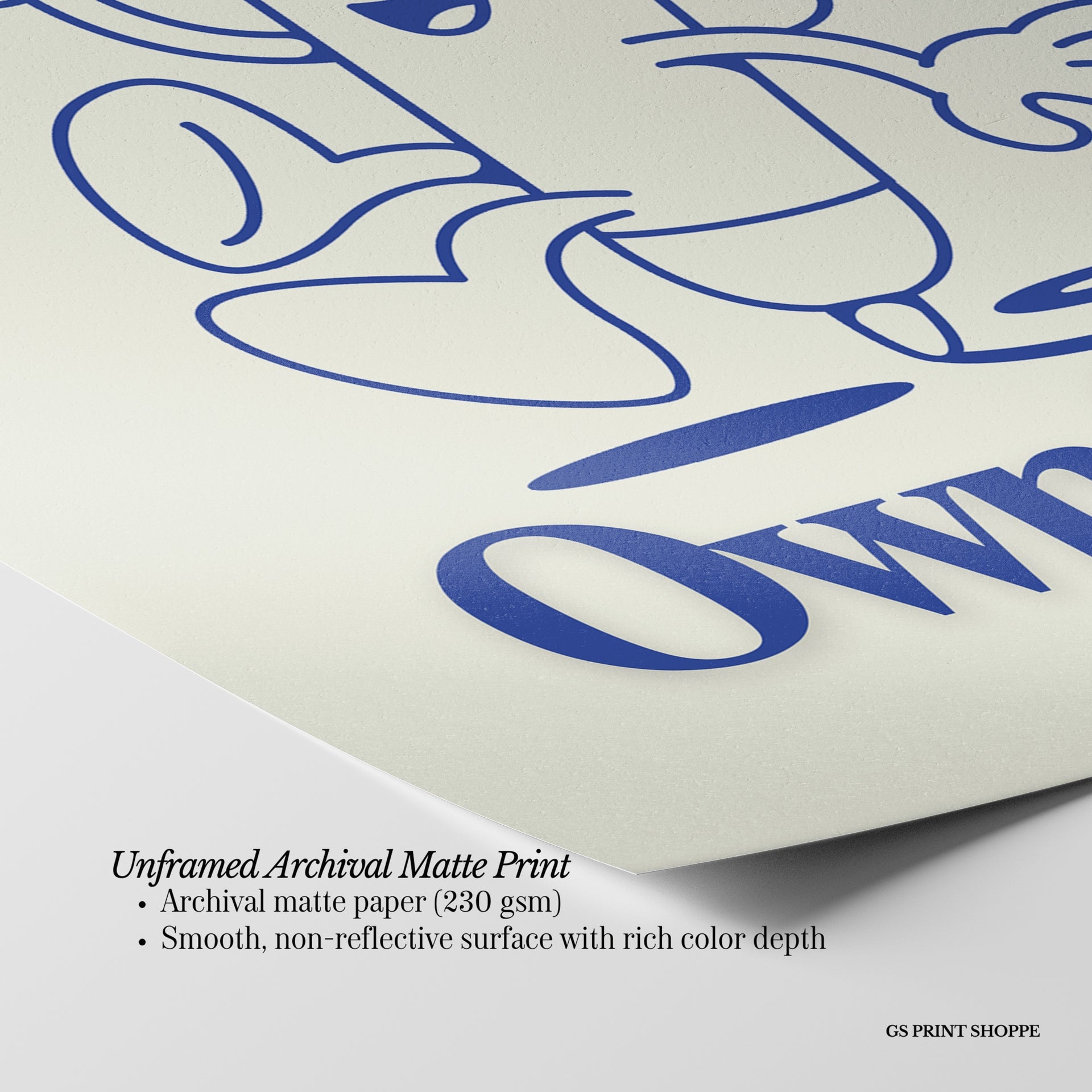 Unframed: This print is professionally printed on archival matte paper (230 gsm), a smooth, acid-free paper with a non-reflective finish. It will be carefully packaged to arrive safely at your door.