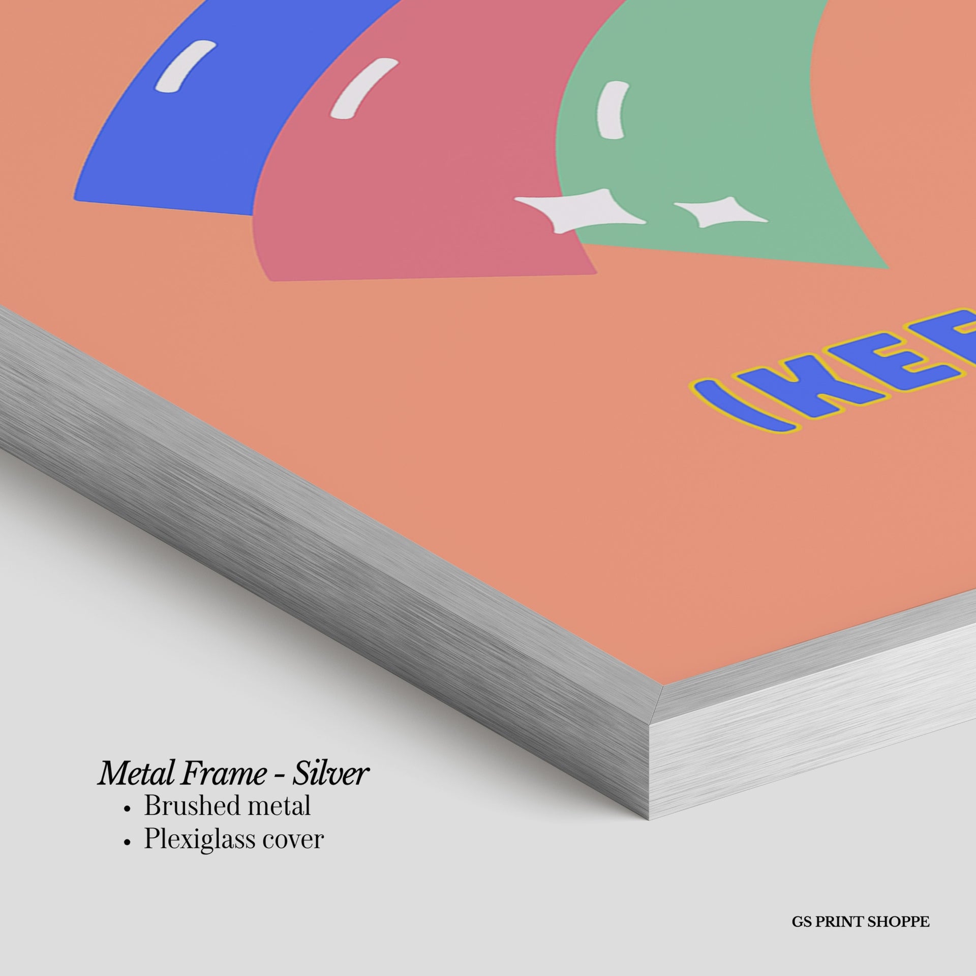 Metal Frame: Sleek and modern, our metal frame is crafted with brushed metal for a polished finish. It comes with durable plexiglass and sturdy metal hangers for horizontal or vertical display.