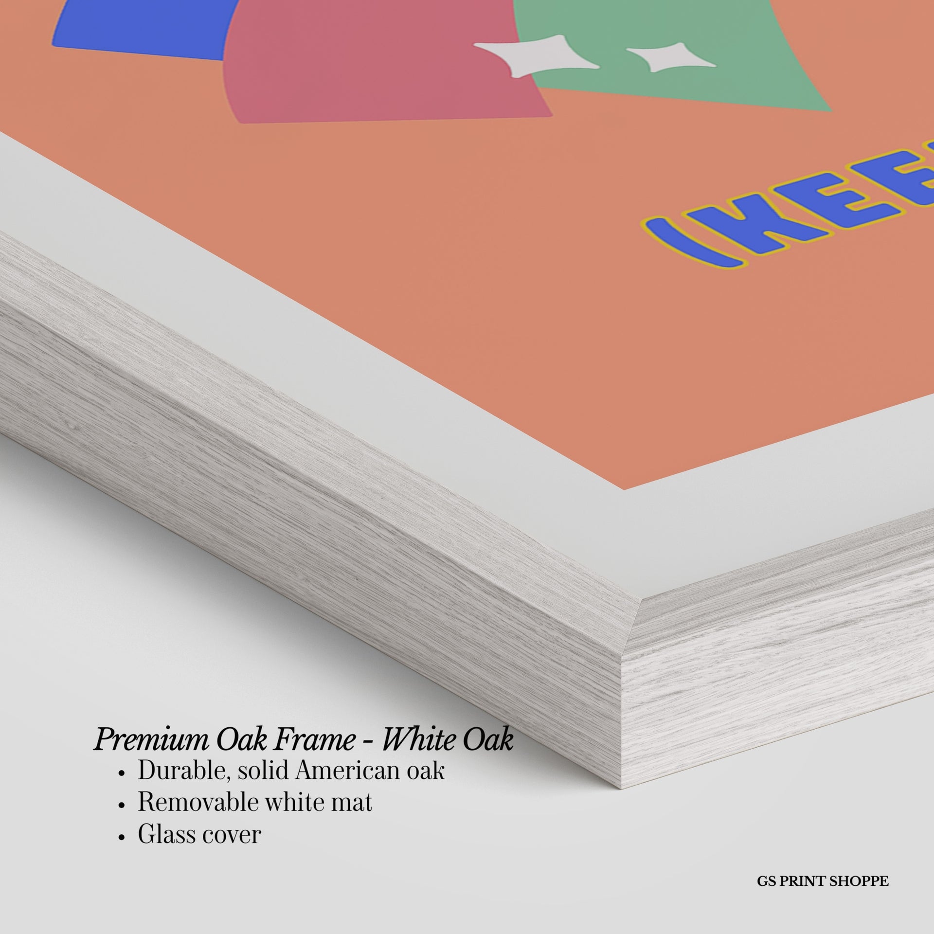 Premium Oak Frame: Our premium oak frame is crafted from solid American oak, offering a warm, natural feel with a high-end finish. We complete this elevated offering with a bright white removable mat and real glass for a versatile and polished look.