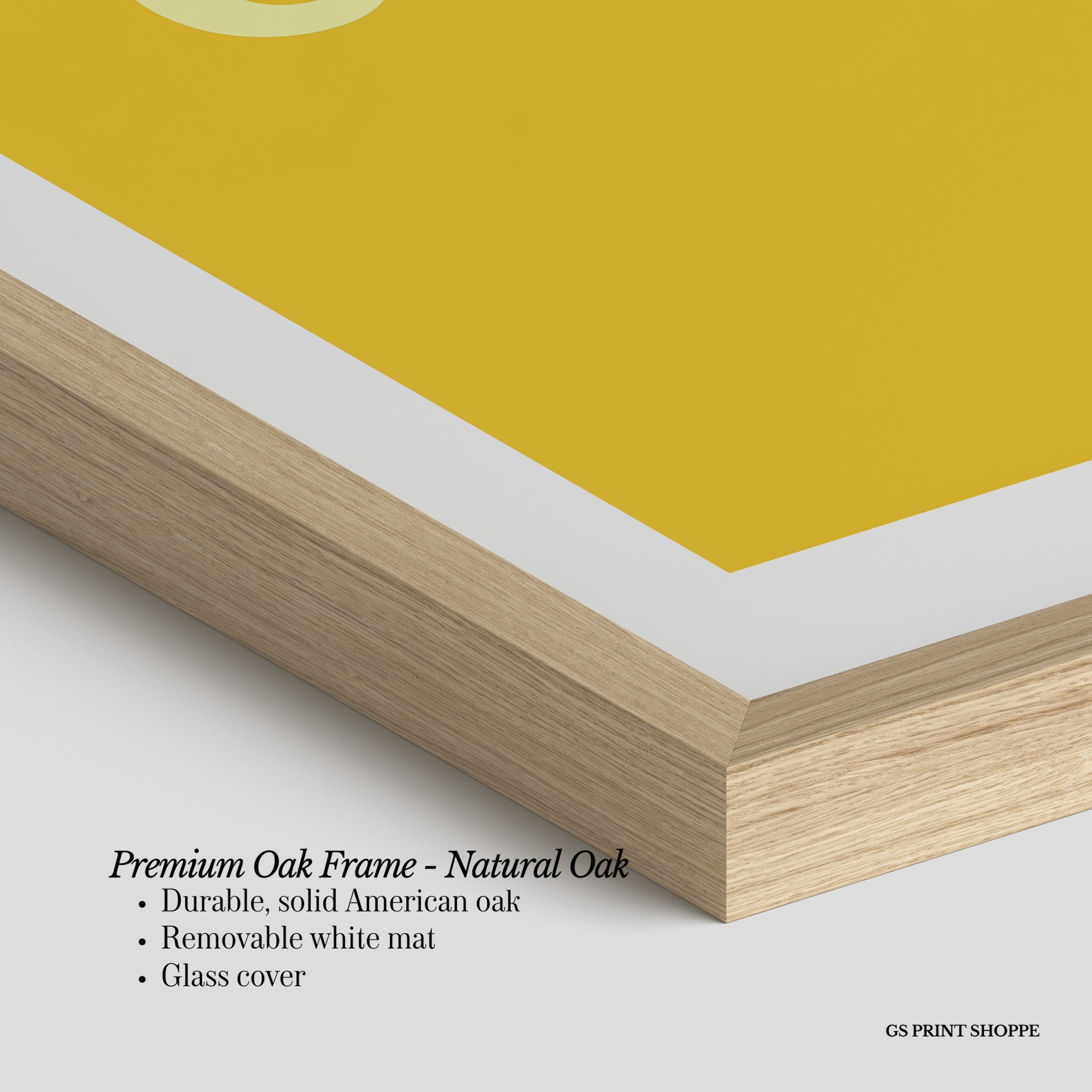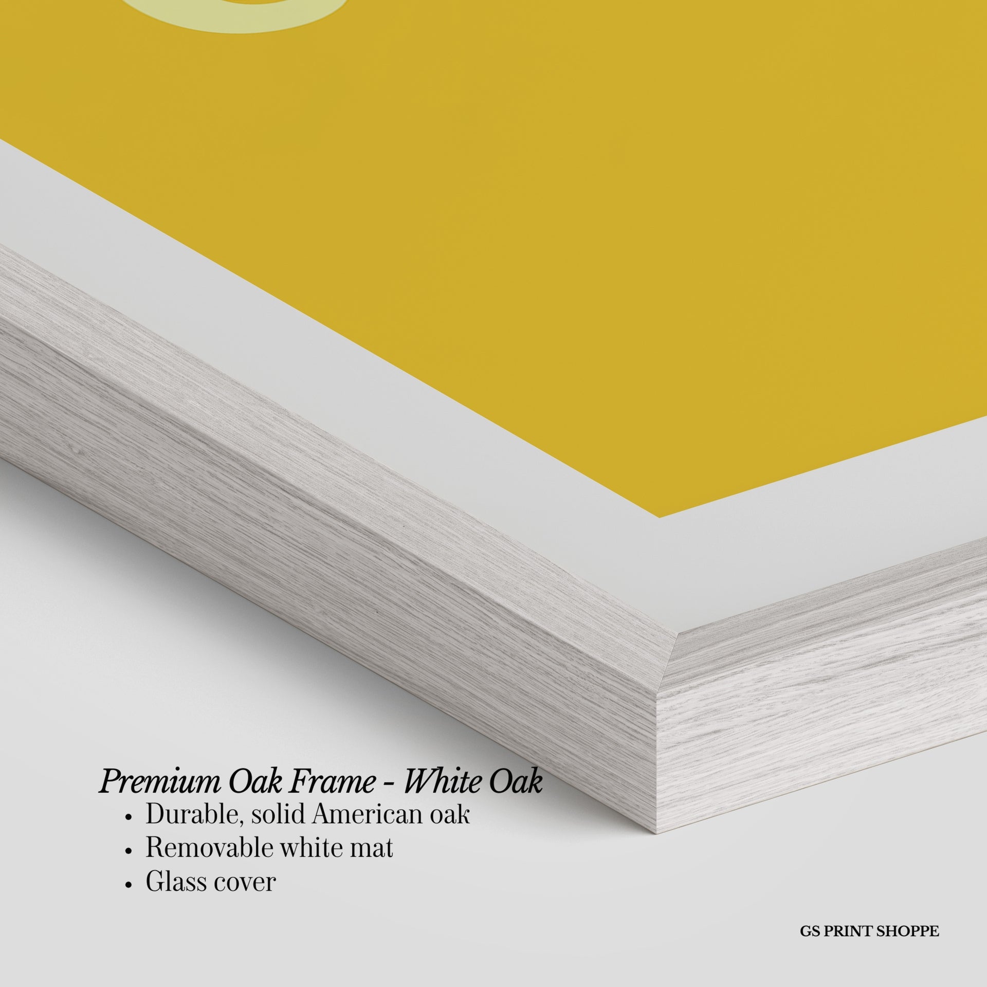 Premium Oak Frame: Our premium oak frame is crafted from solid American oak, offering a warm, natural feel with a high-end finish. We complete this elevated offering with a bright white removable mat and real glass for a versatile and polished look.