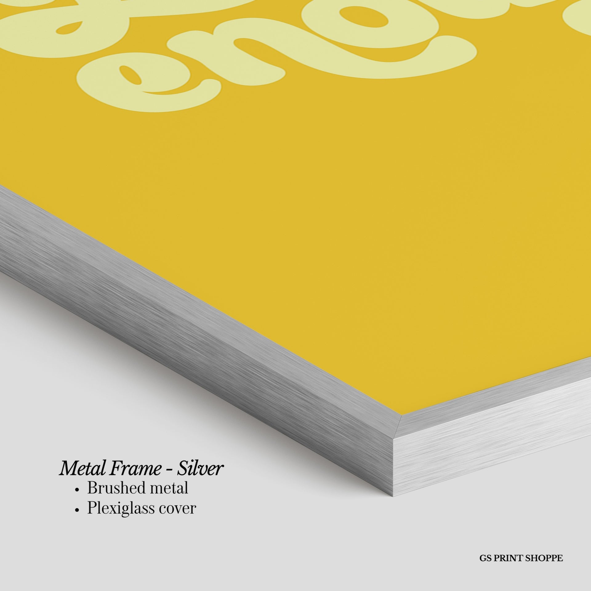 Metal Frame: Sleek and modern, our metal frame is crafted with brushed metal for a polished finish. It comes with durable plexiglass and sturdy metal hangers for horizontal or vertical display.