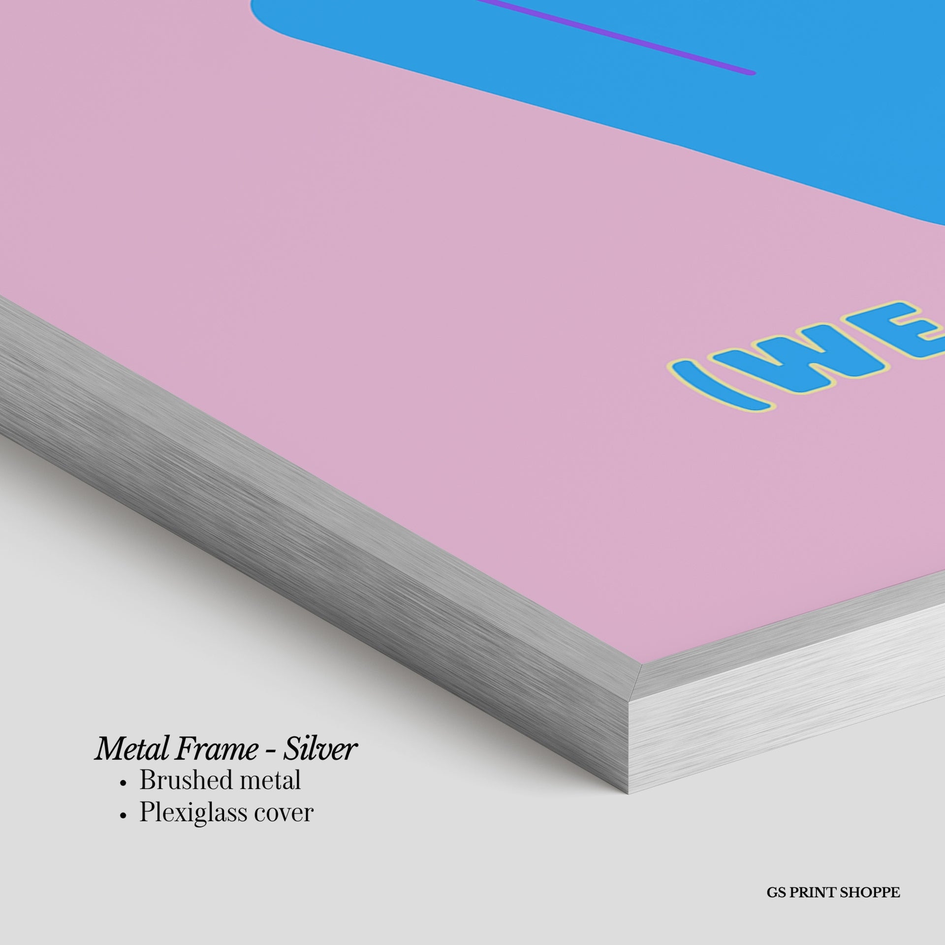 Metal Frame: Sleek and modern, our metal frame is crafted with brushed metal for a polished finish. It comes with durable plexiglass and sturdy metal hangers for horizontal or vertical display.