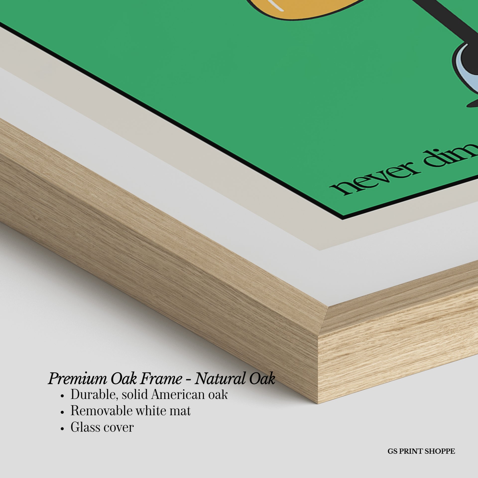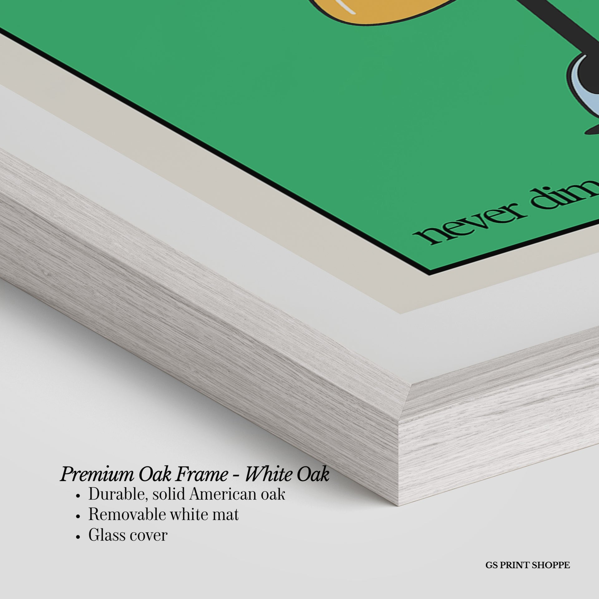 Premium Oak Frame: Our premium oak frame is crafted from solid American oak, offering a warm, natural feel with a high-end finish. We complete this elevated offering with a bright white removable mat and real glass for a versatile and polished look.