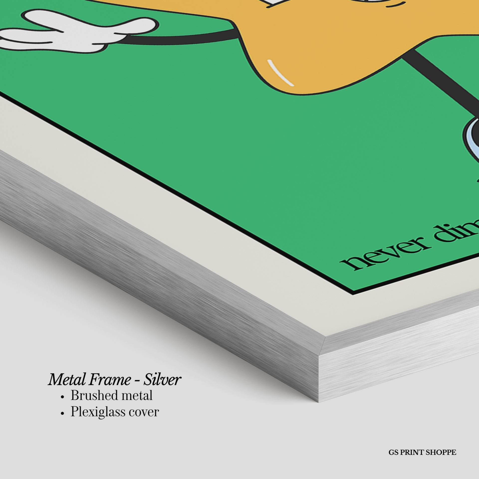 Metal Frame: Sleek and modern, our metal frame is crafted with brushed metal for a polished finish. It comes with durable plexiglass and sturdy metal hangers for horizontal or vertical display.