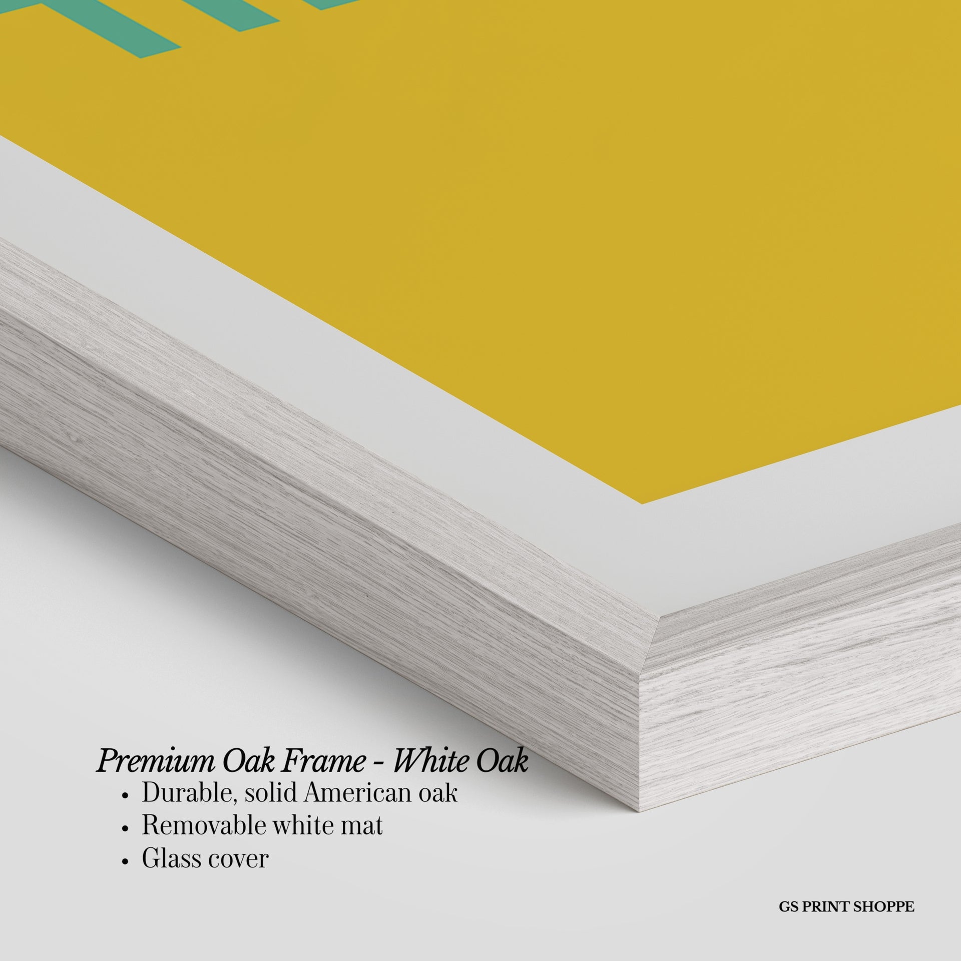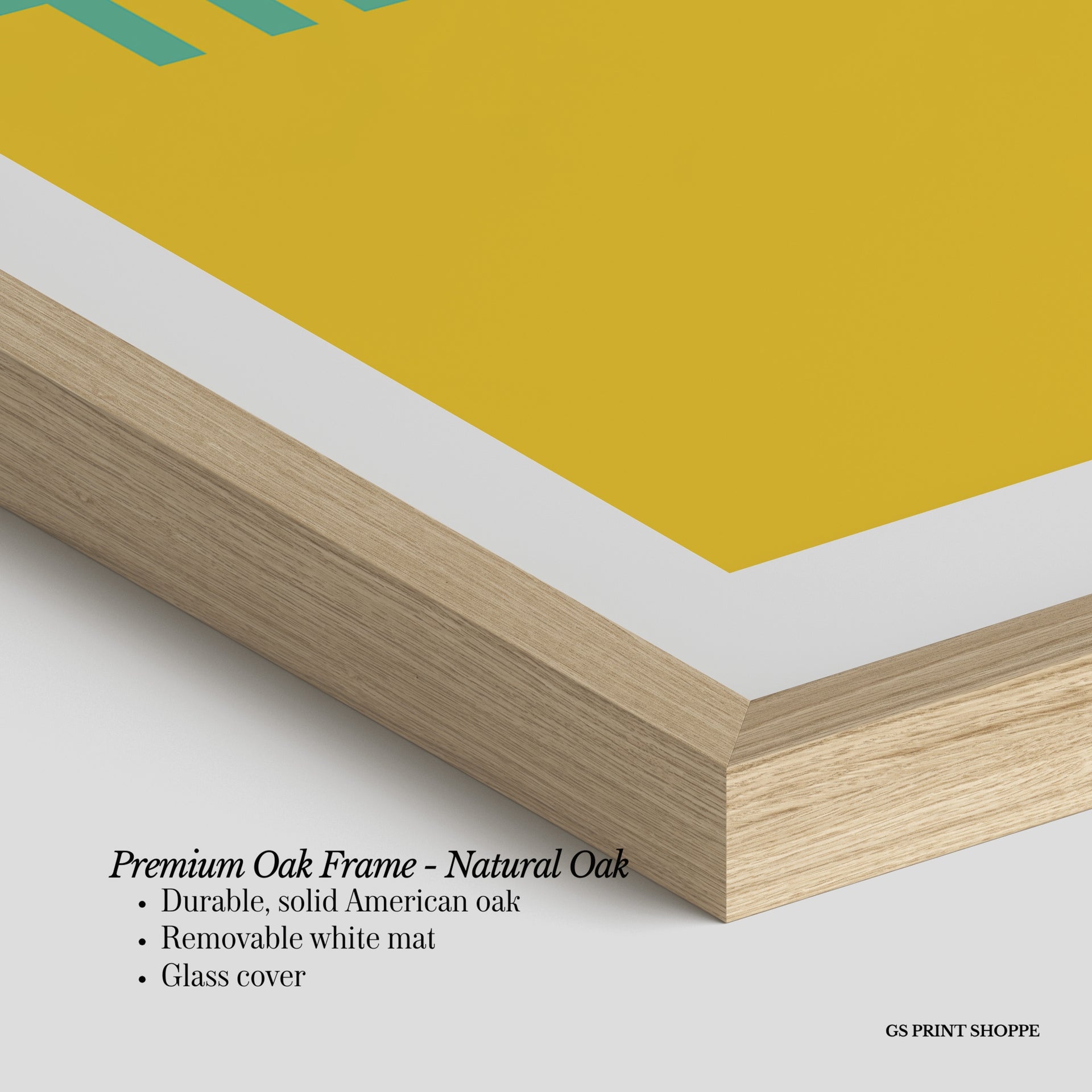 Premium Oak Frame: Our premium oak frame is crafted from solid American oak, offering a warm, natural feel with a high-end finish. We complete this elevated offering with a bright white removable mat and real glass for a versatile and polished look.