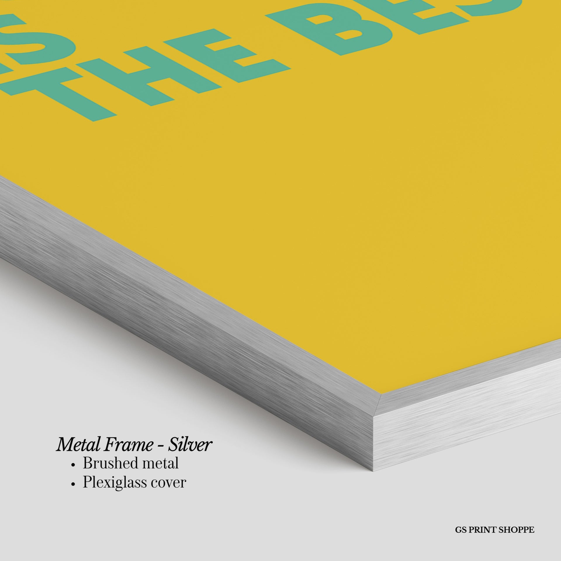 Metal Frame: Sleek and modern, our metal frame is crafted with brushed metal for a polished finish. It comes with durable plexiglass and sturdy metal hangers for horizontal or vertical display.