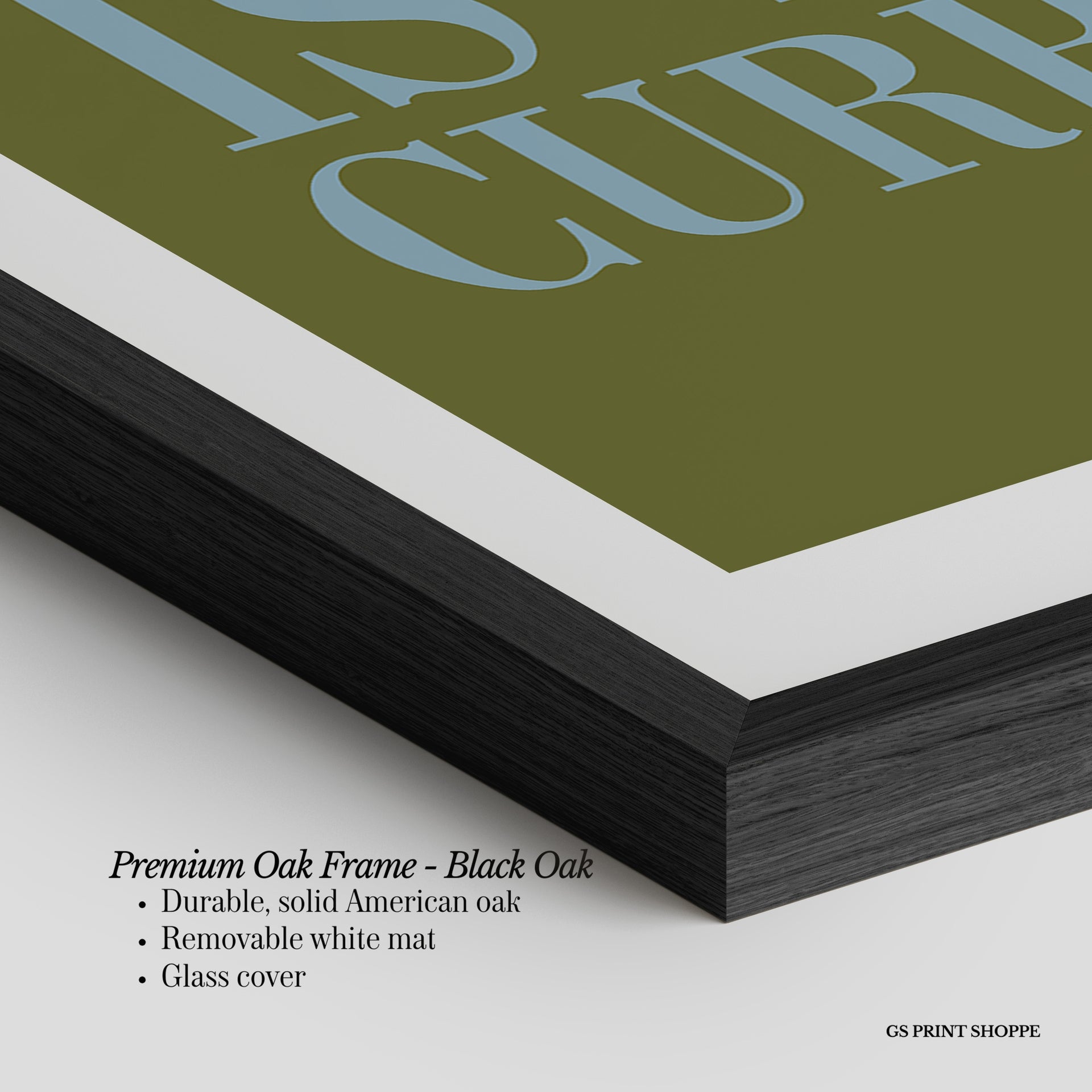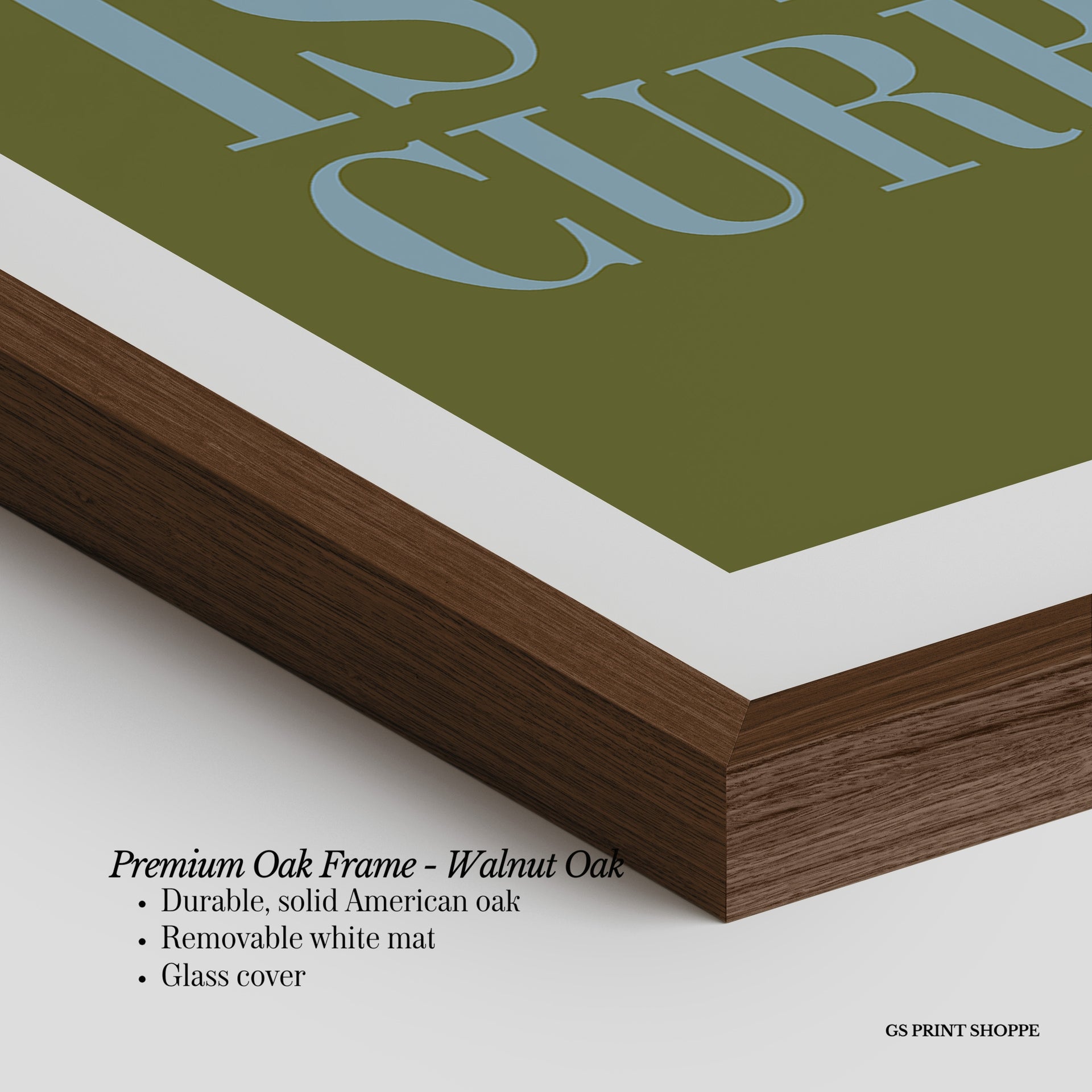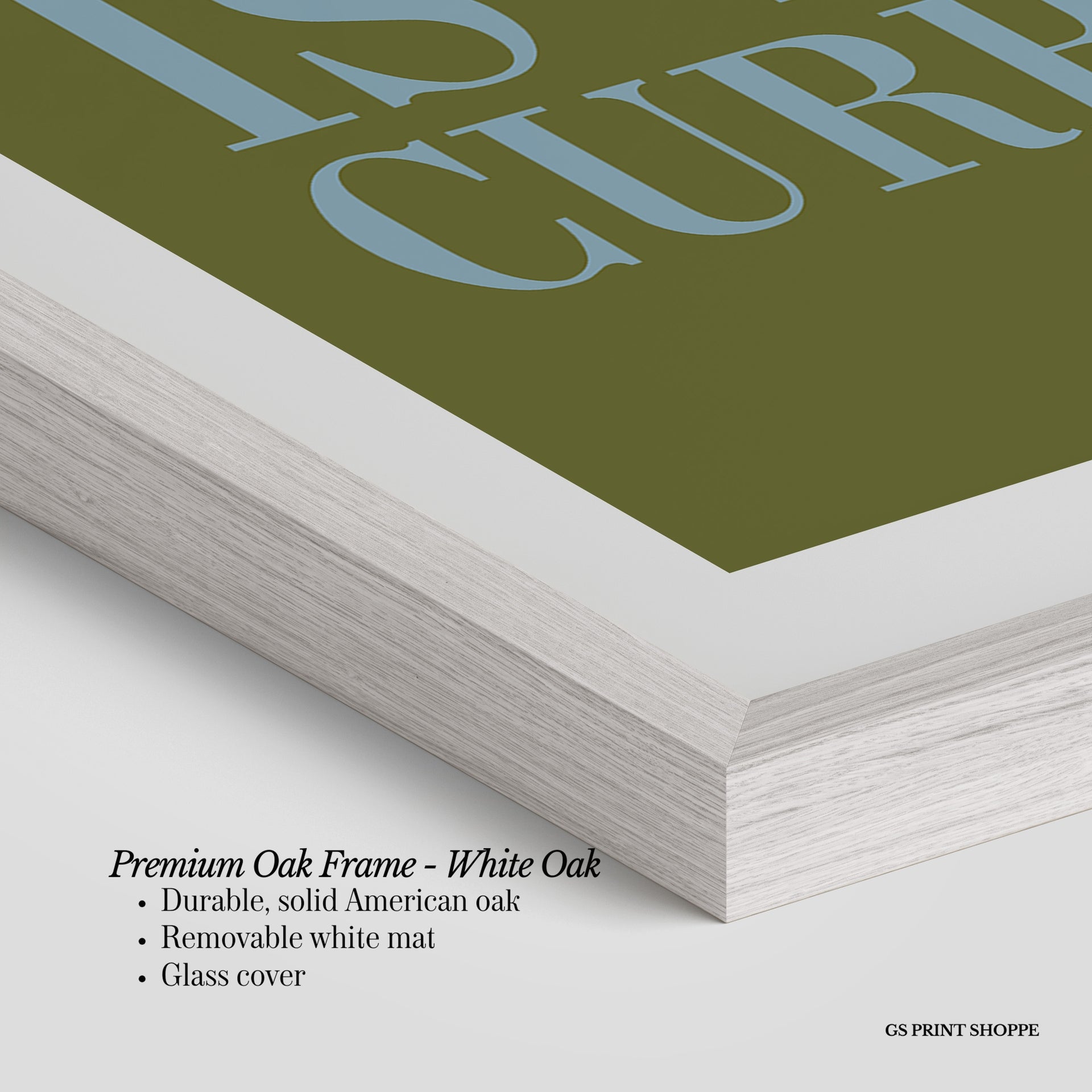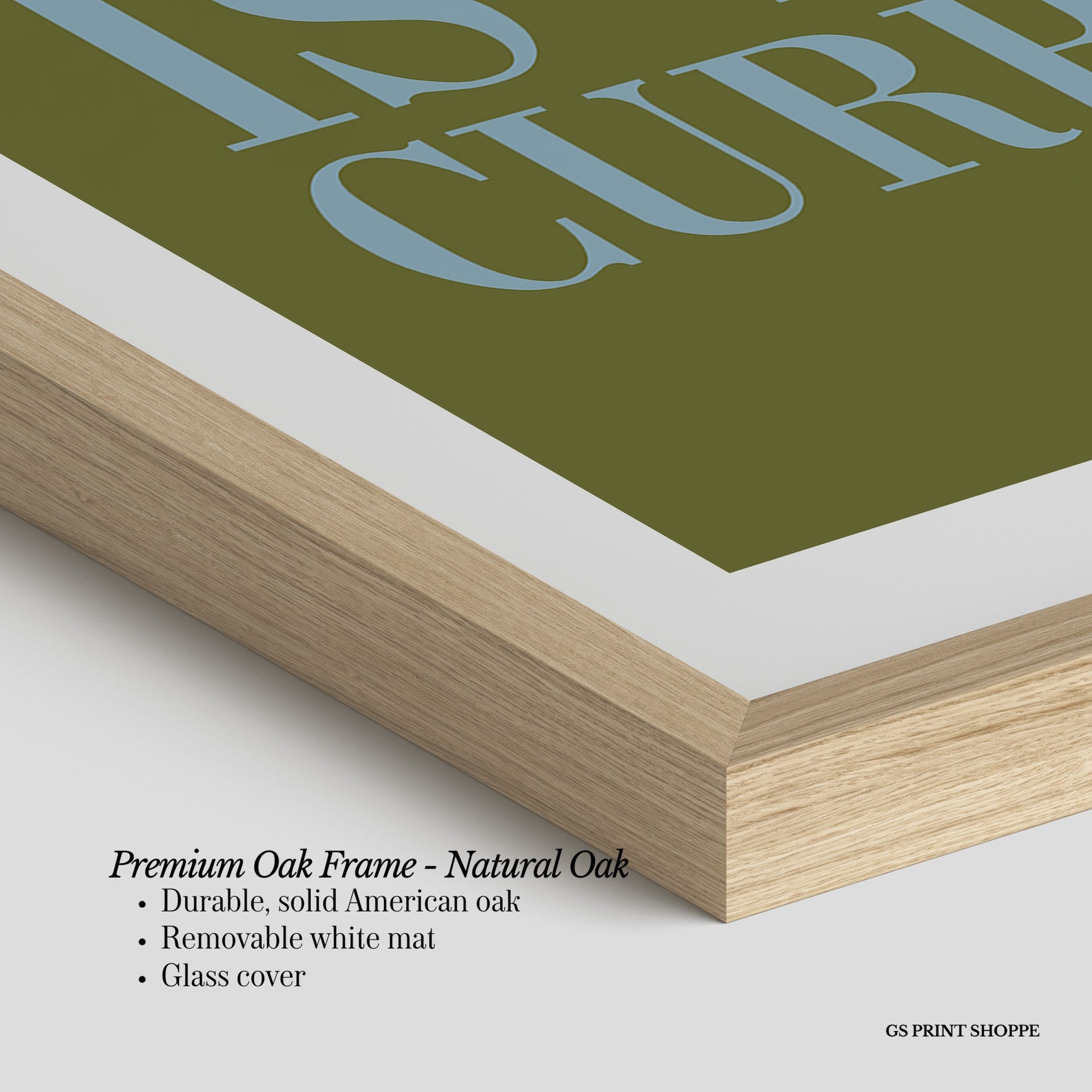 Premium Oak Frame: Our premium oak frame is crafted from solid American oak, offering a warm, natural feel with a high-end finish. We complete this elevated offering with a bright white removable mat and real glass for a versatile and polished look.