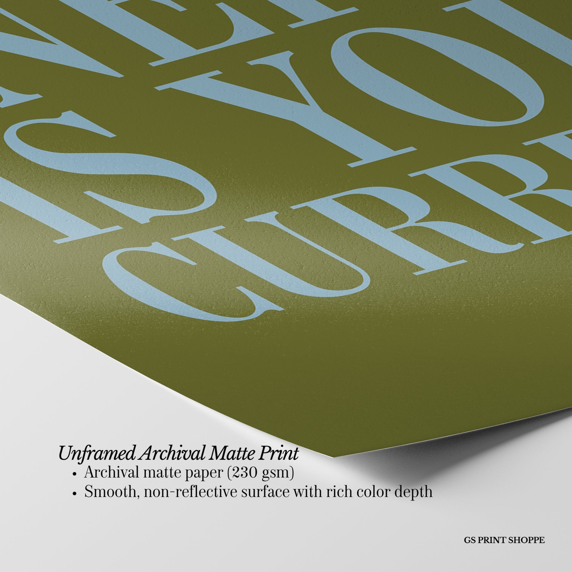 Unframed: This print is professionally printed on archival matte paper (230 gsm), a smooth, acid-free paper with a non-reflective finish. It will be carefully packaged to arrive safely at your door.