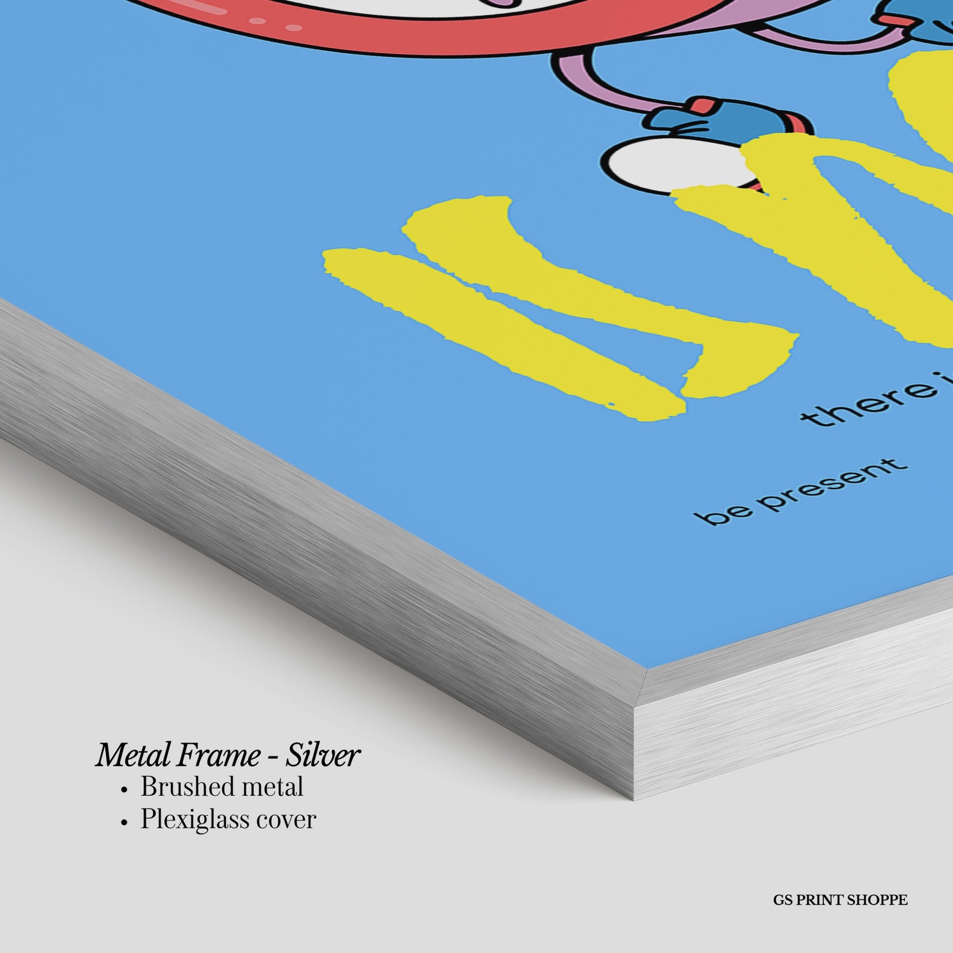 Metal Frame: Sleek and modern, our metal frame is crafted with brushed metal for a polished finish. It comes with durable plexiglass and sturdy metal hangers for horizontal or vertical display.