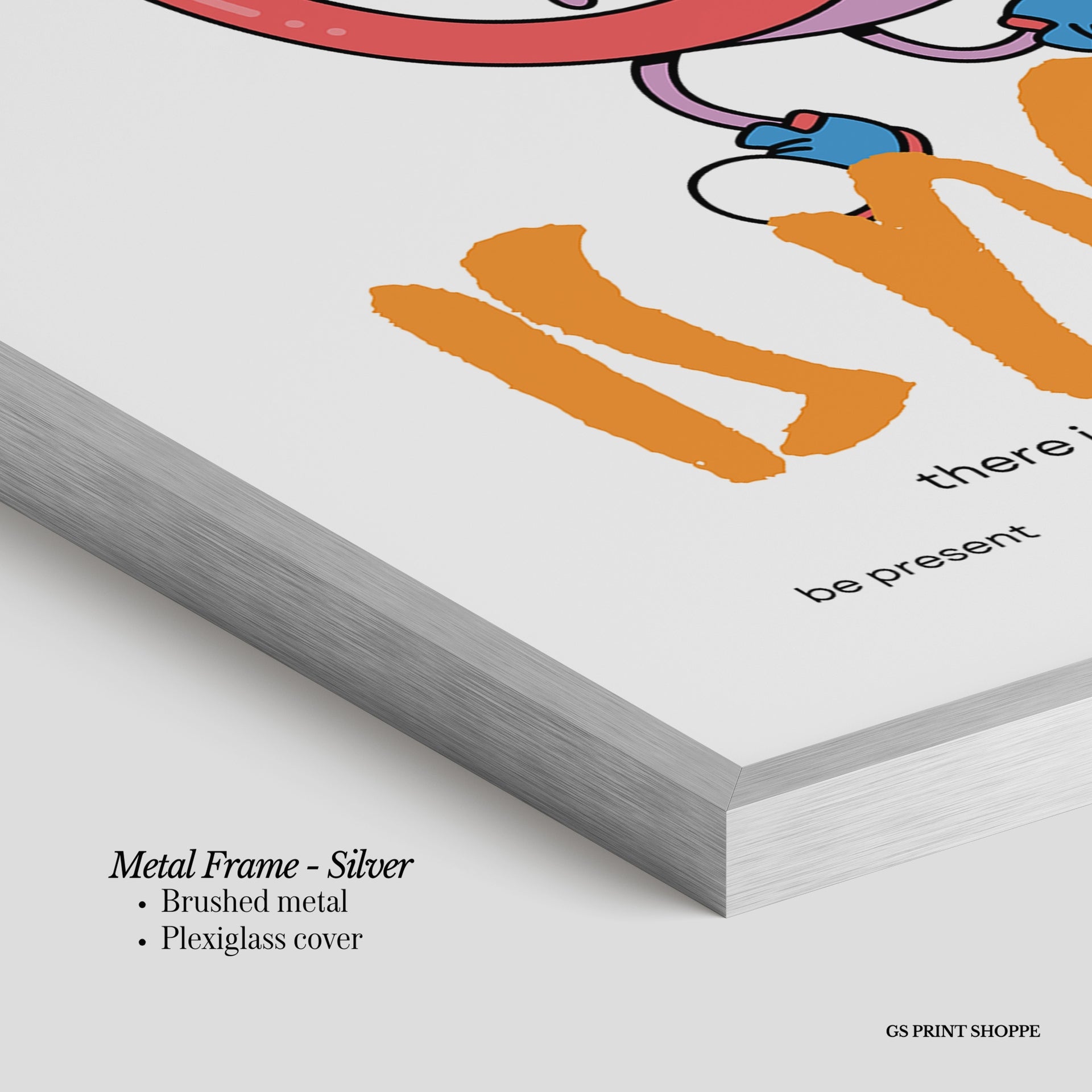 Metal Frame: Sleek and modern, our metal frame is crafted with brushed metal for a polished finish. It comes with durable plexiglass and sturdy metal hangers for horizontal or vertical display.