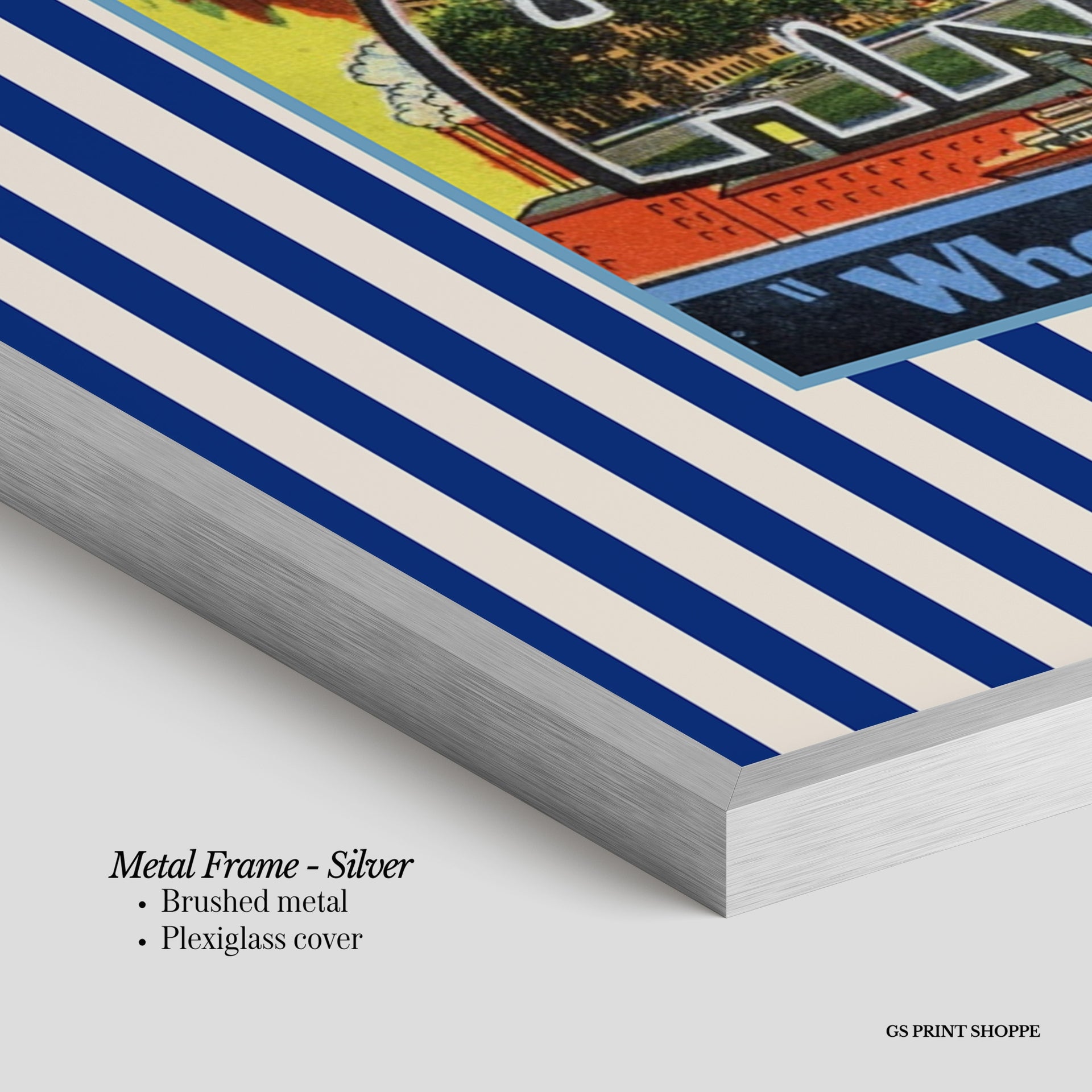 Metal Frame: Sleek and modern, our metal frame is crafted with brushed metal for a polished finish. It comes with durable plexiglass and sturdy metal hangers for horizontal or vertical display.