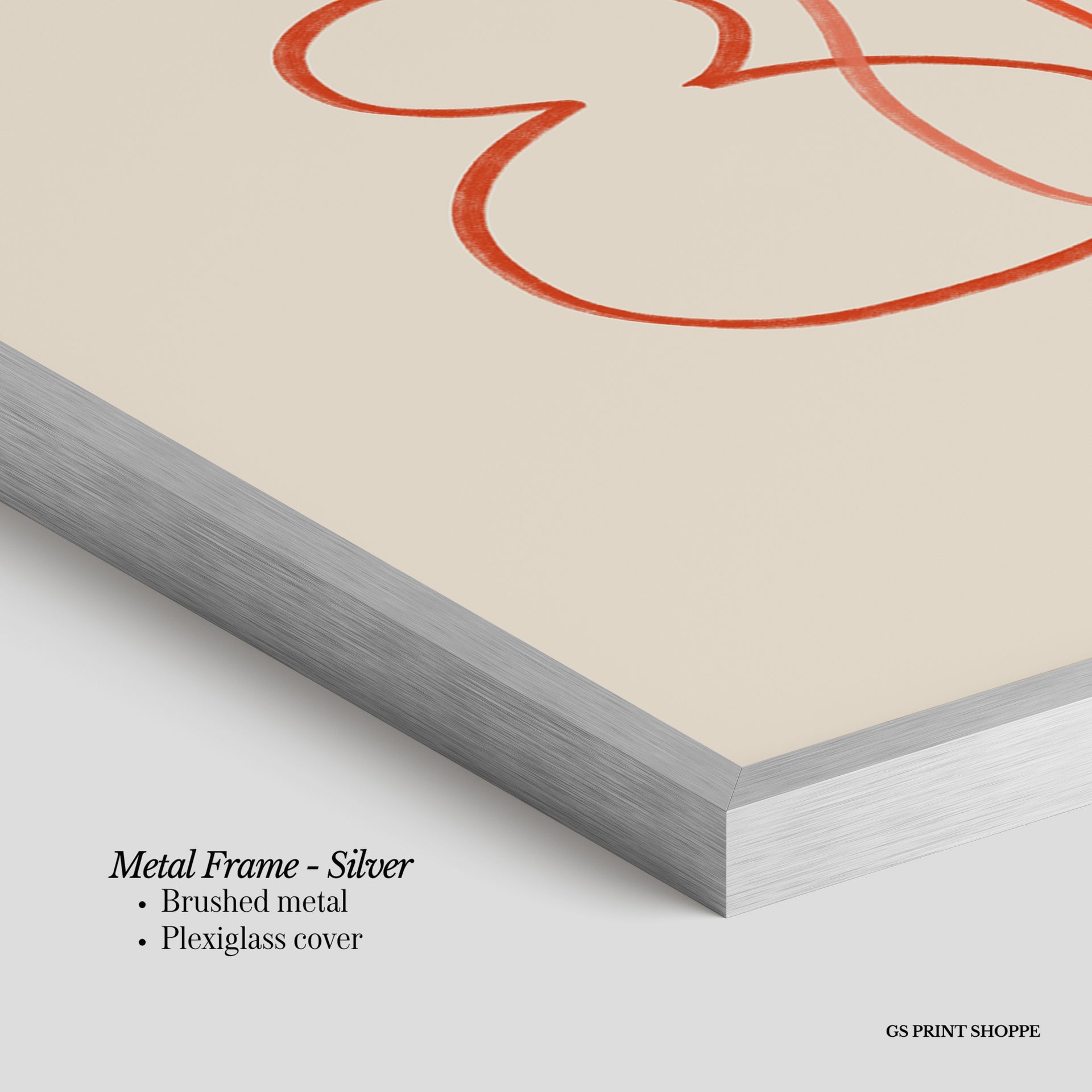 Metal Frame: Sleek and modern, our metal frame is crafted with brushed metal for a polished finish. It comes with durable plexiglass and sturdy metal hangers for horizontal or vertical display.
