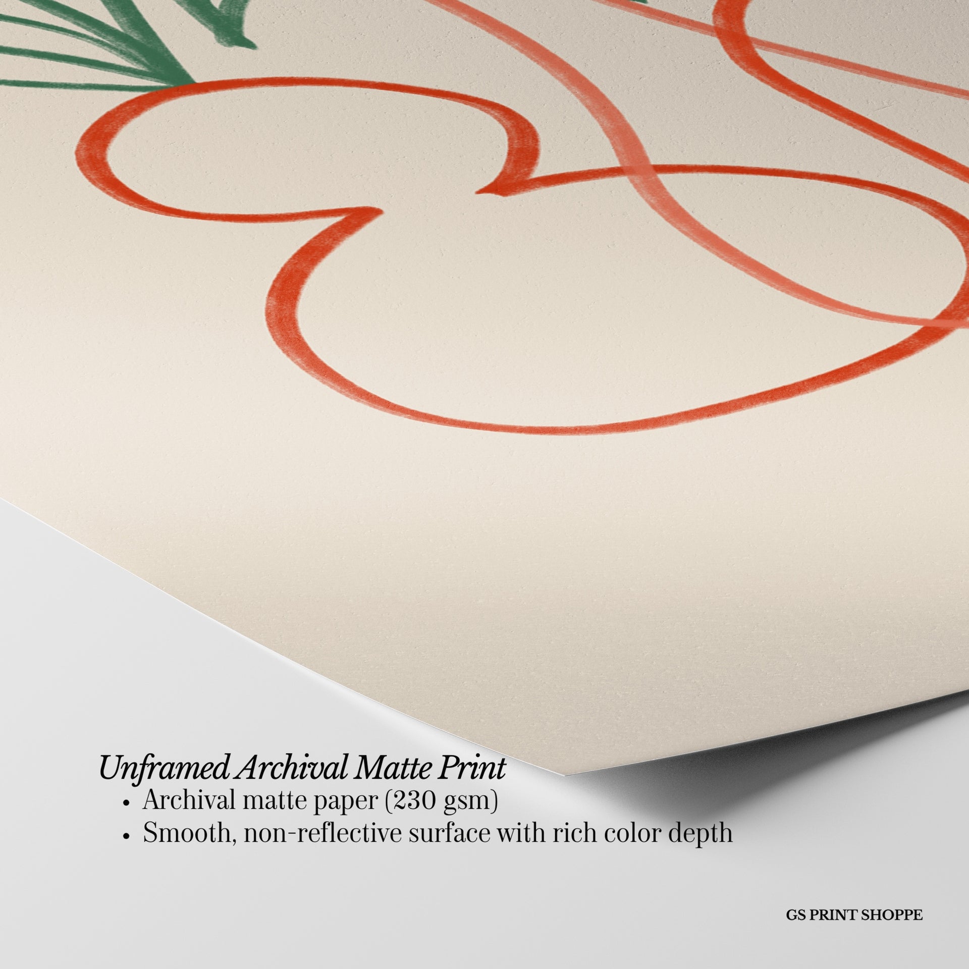 Unframed: This print is professionally printed on archival matte paper (230 gsm), a smooth, acid-free paper with a non-reflective finish. It will be carefully packaged to arrive safely at your door.
