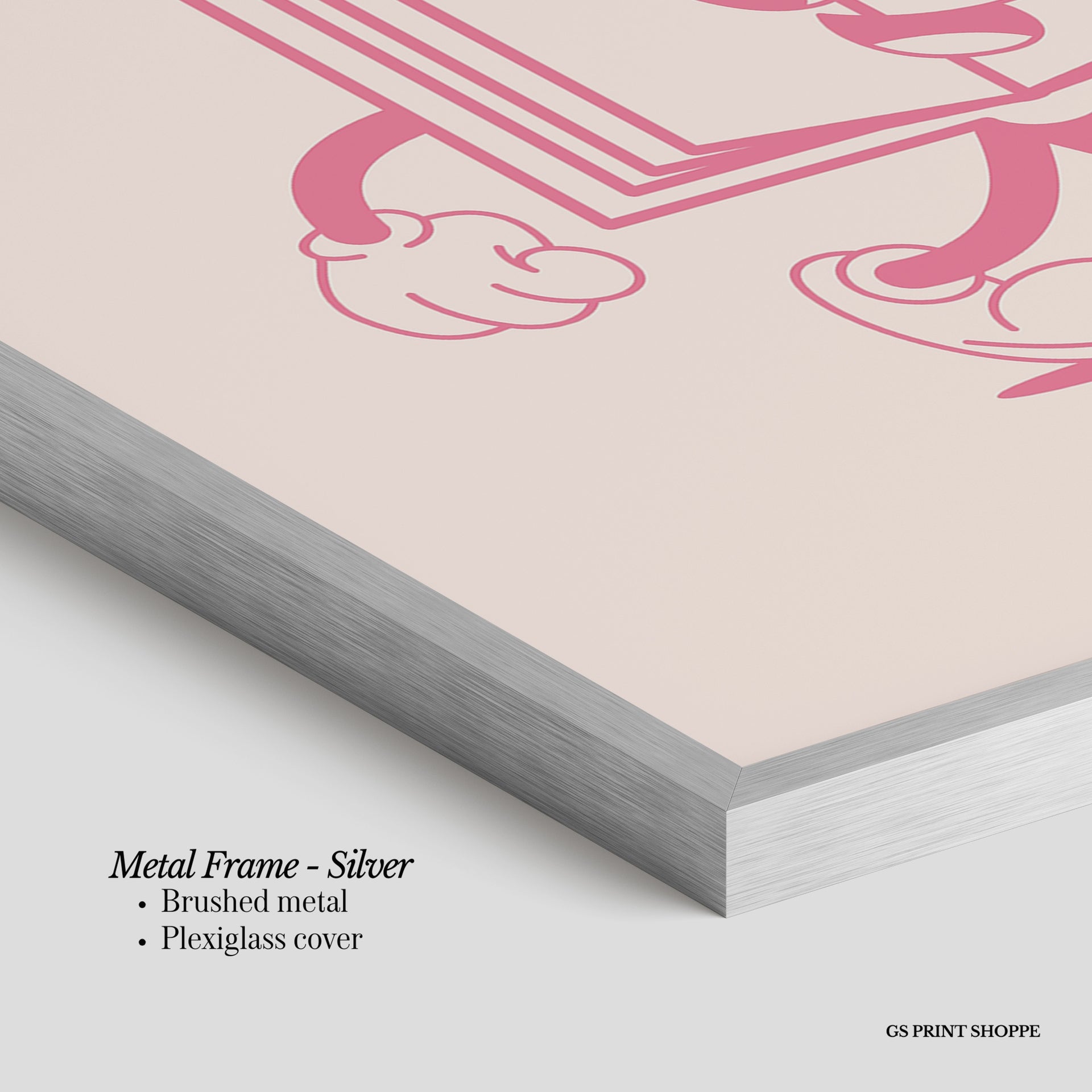 Metal Frame: Sleek and modern, our metal frame is crafted with brushed metal for a polished finish. It comes with durable plexiglass and sturdy metal hangers for horizontal or vertical display.