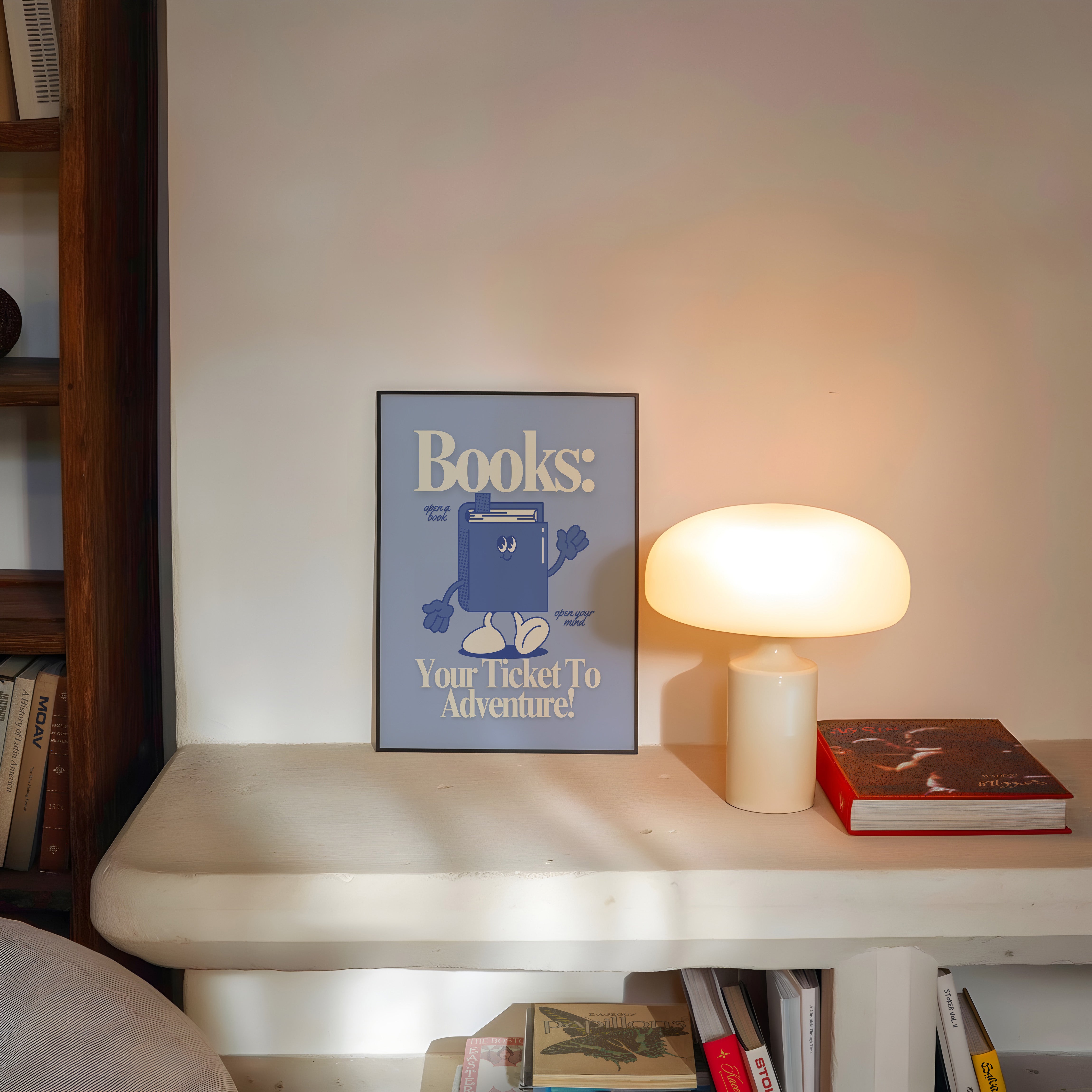 Books Your Ticket To Adventure Vertical Art Print - Blue