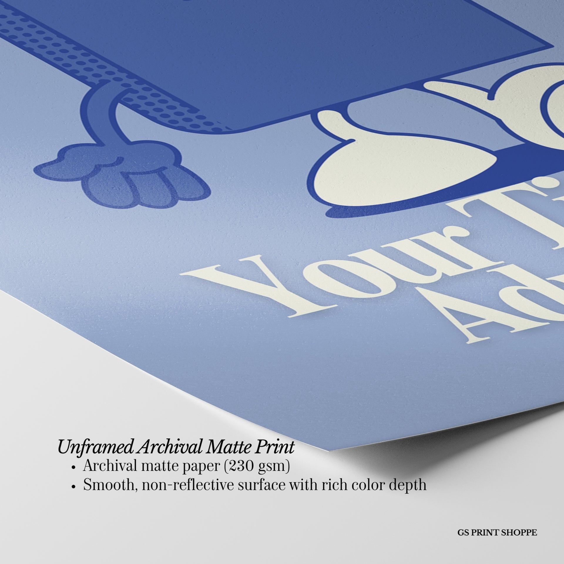 Unframed: This print is professionally printed on archival matte paper (230 gsm), a smooth, acid-free paper with a non-reflective finish. It will be carefully packaged to arrive safely at your door.