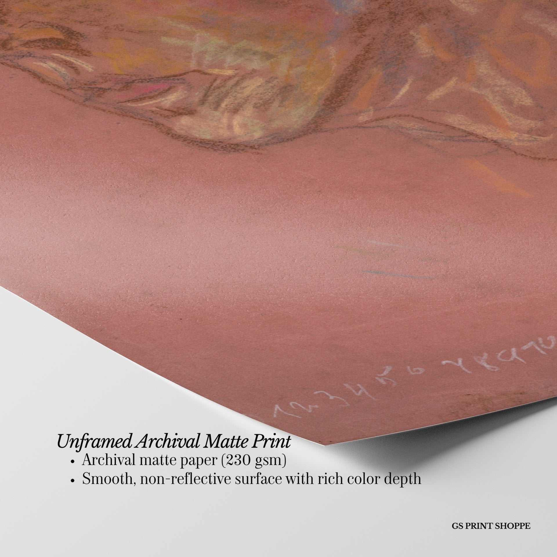 Unframed: This print is professionally printed on archival matte paper (230 gsm), a smooth, acid-free paper with a non-reflective finish. It will be carefully packaged to arrive safely at your door.