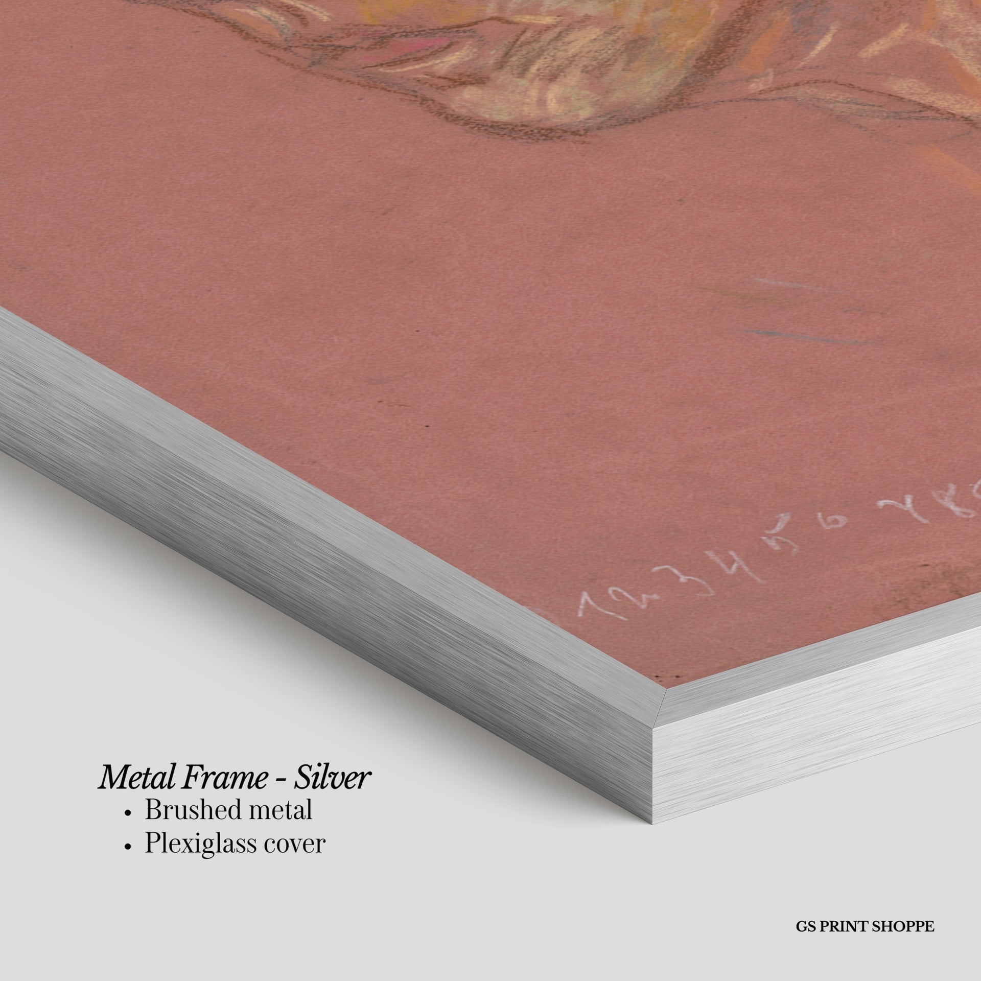 Metal Frame: Sleek and modern, our metal frame is crafted with brushed metal for a polished finish. It comes with durable plexiglass and sturdy metal hangers for horizontal or vertical display.