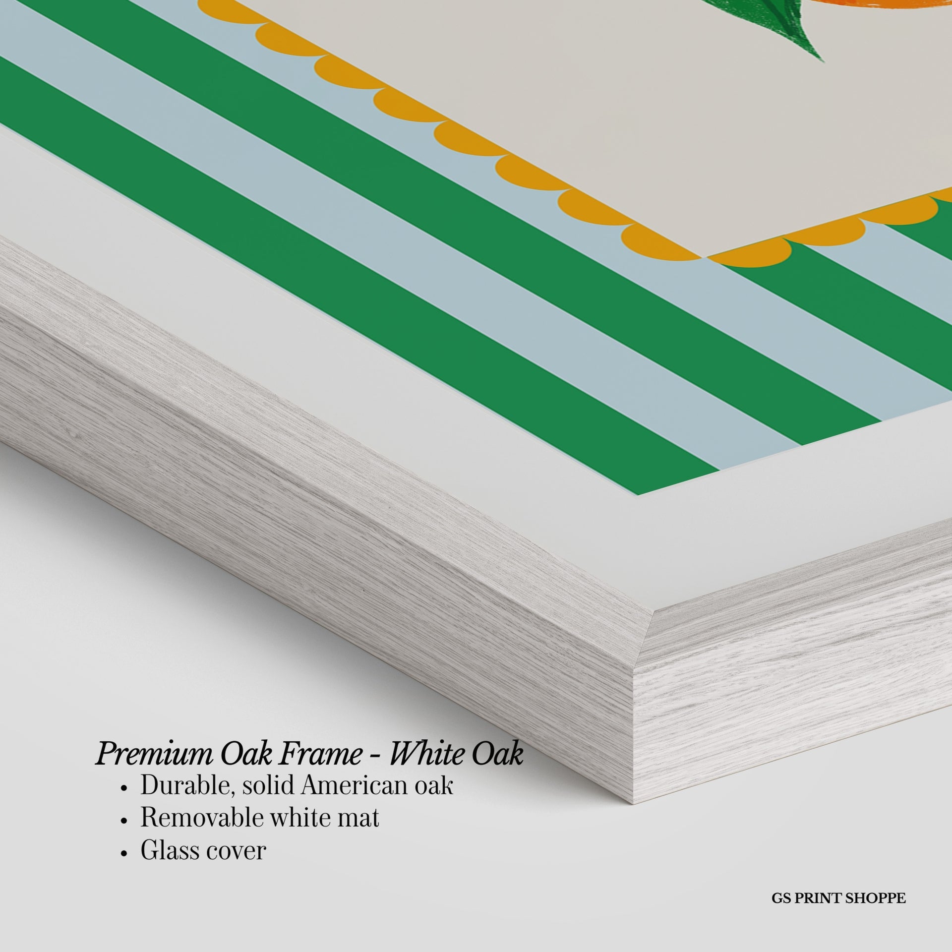 Premium Oak Frame: Our premium oak frame is crafted from solid American oak, offering a warm, natural feel with a high-end finish. We complete this elevated offering with a bright white removable mat and real glass for a versatile and polished look.