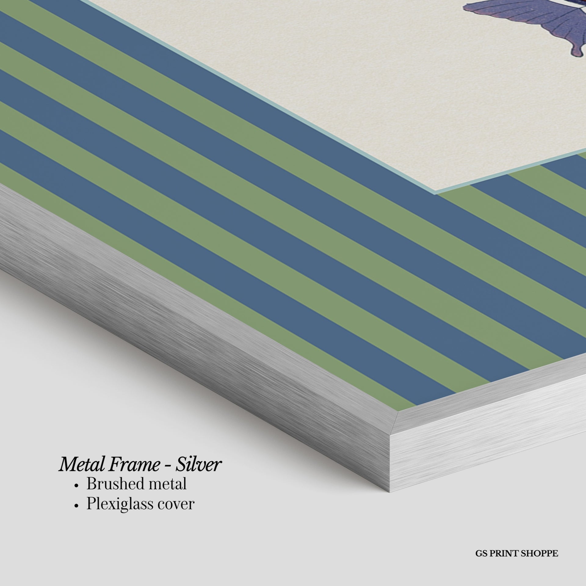 Metal Frame: Sleek and modern, our metal frame is crafted with brushed metal for a polished finish. It comes with durable plexiglass and sturdy metal hangers for horizontal or vertical display.