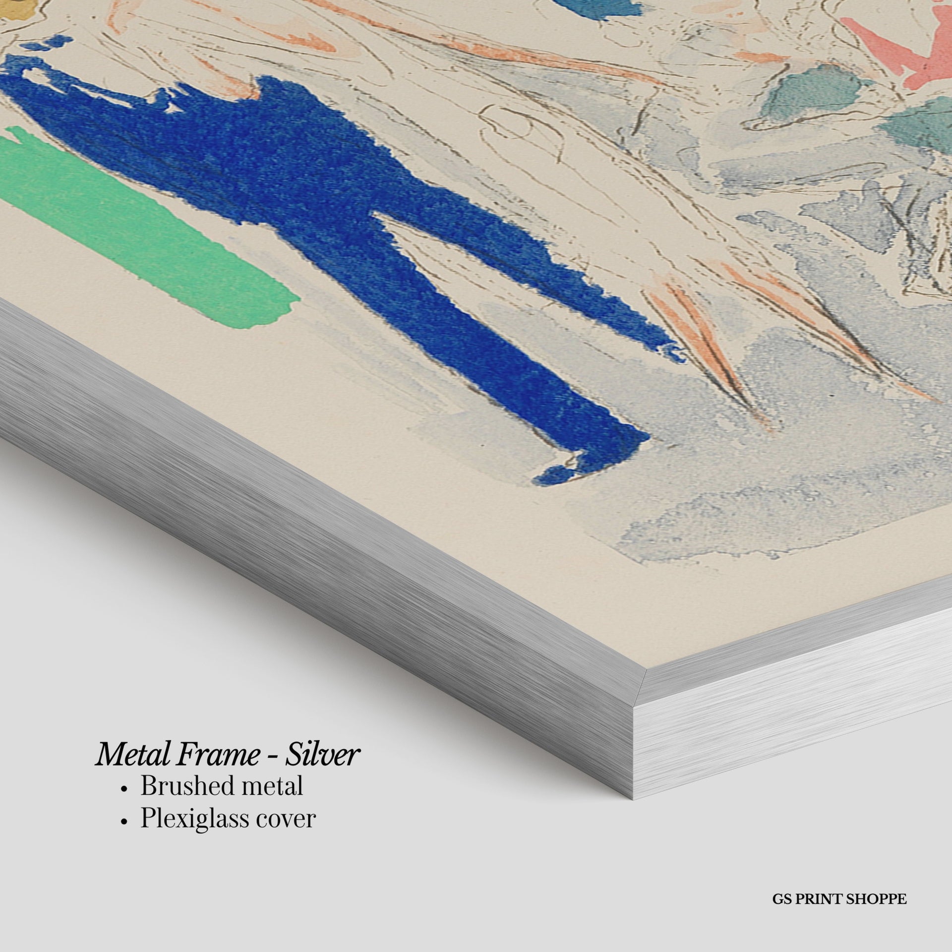 Metal Frame: Sleek and modern, our metal frame is crafted with brushed metal for a polished finish. It comes with durable plexiglass and sturdy metal hangers for horizontal or vertical display.