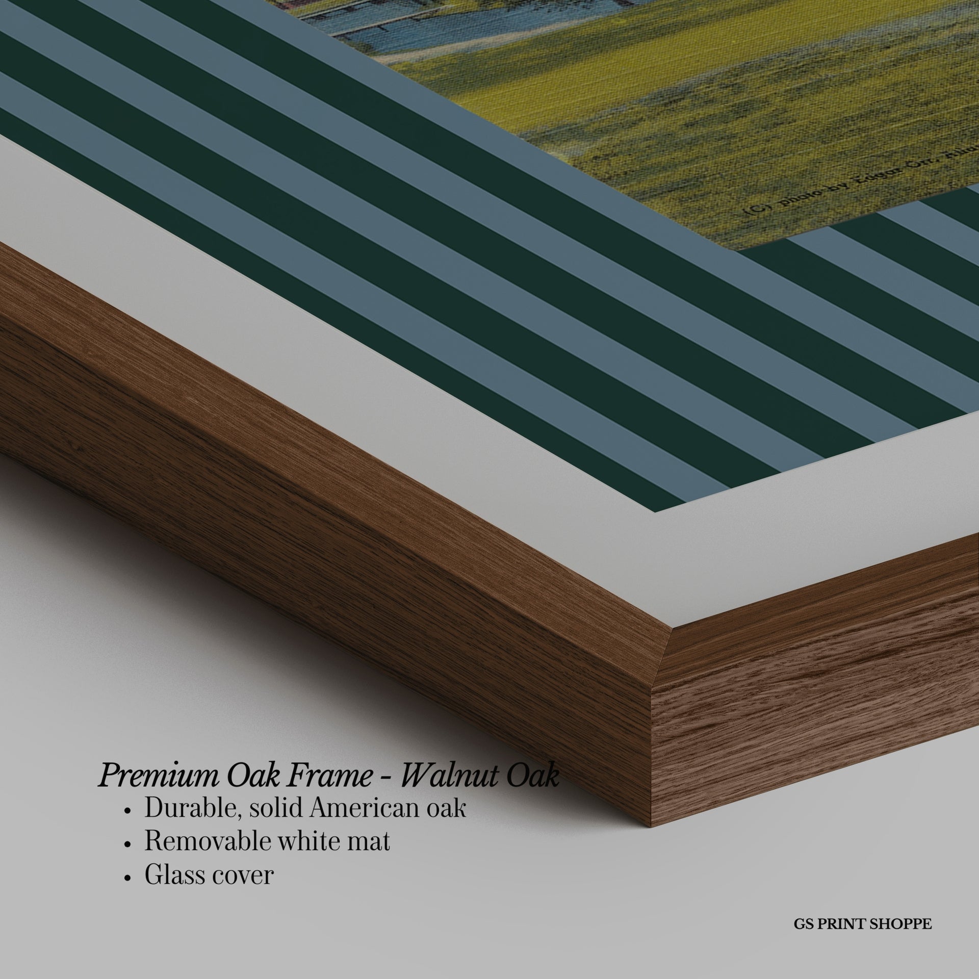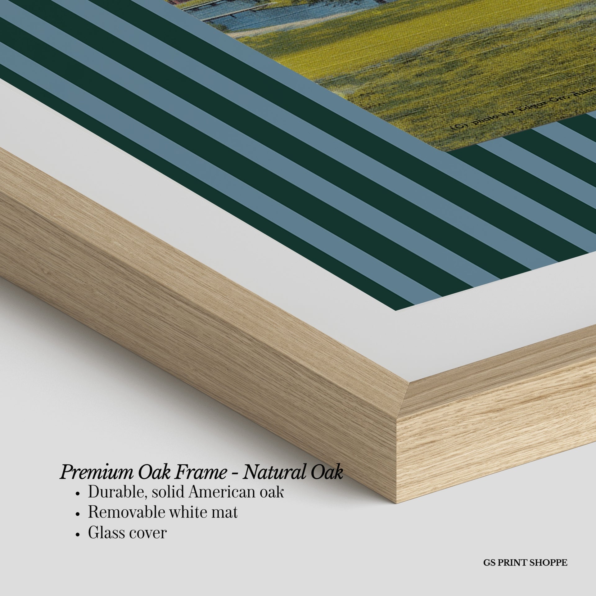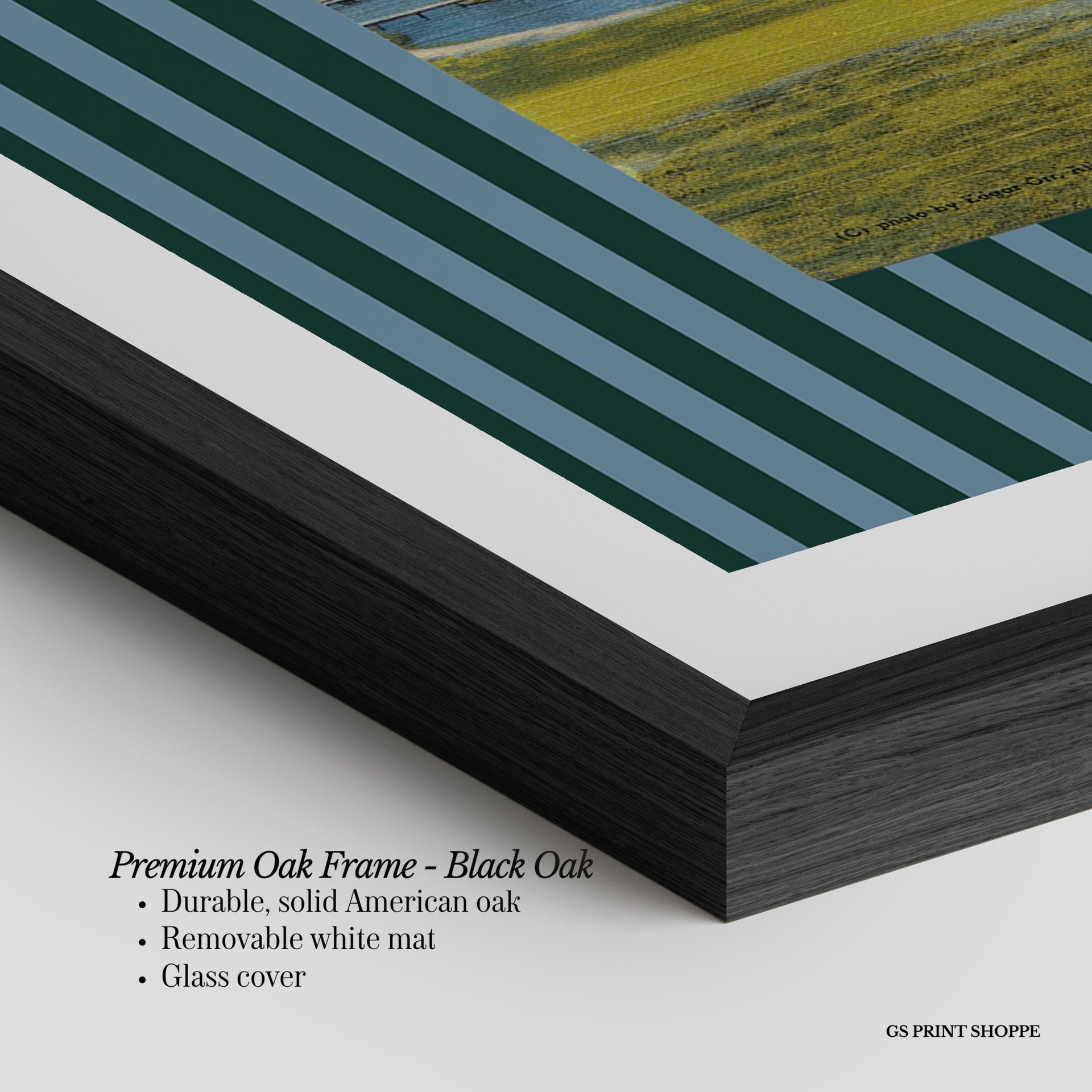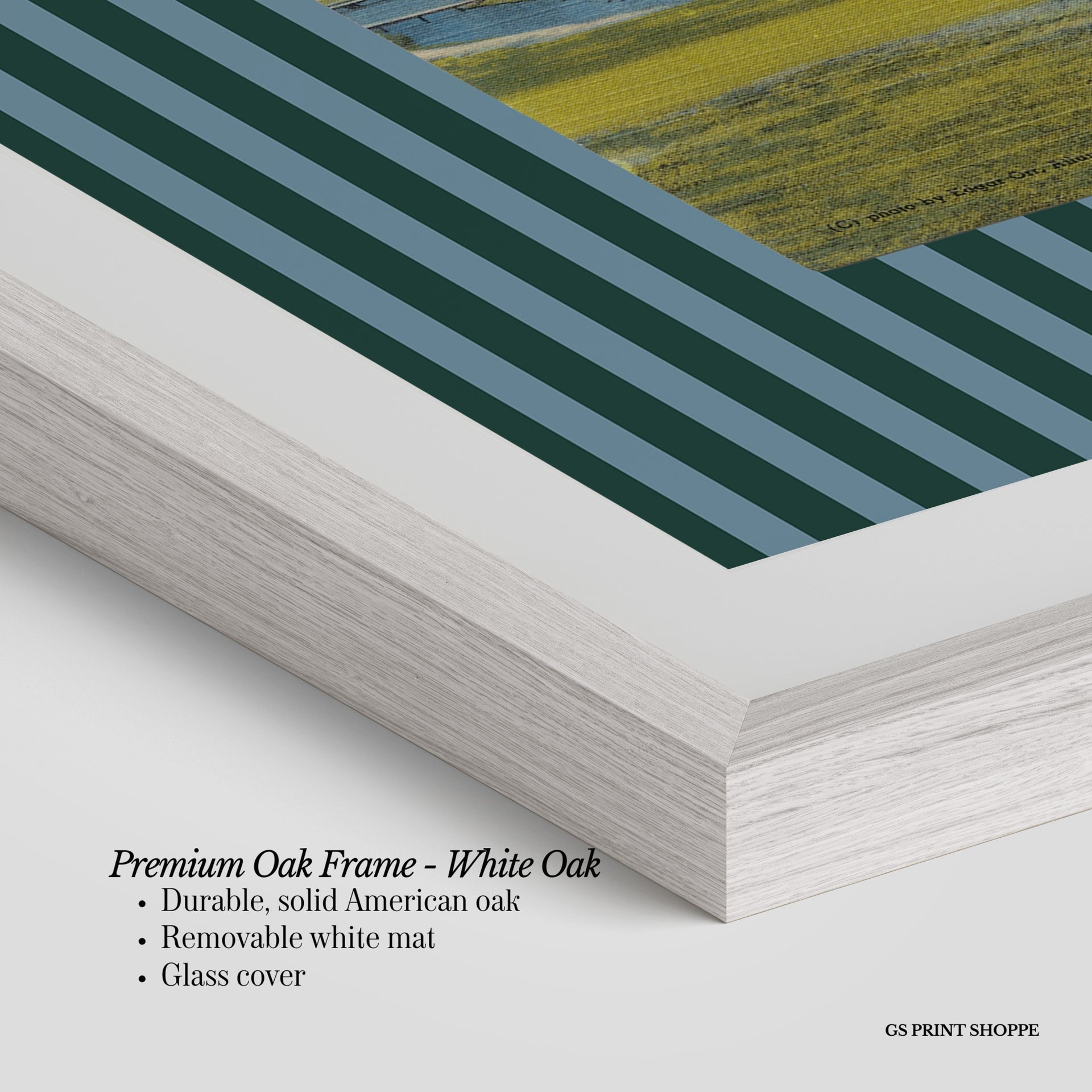 Premium Oak Frame: Our premium oak frame is crafted from solid American oak, offering a warm, natural feel with a high-end finish. We complete this elevated offering with a bright white removable mat and real glass for a versatile and polished look.