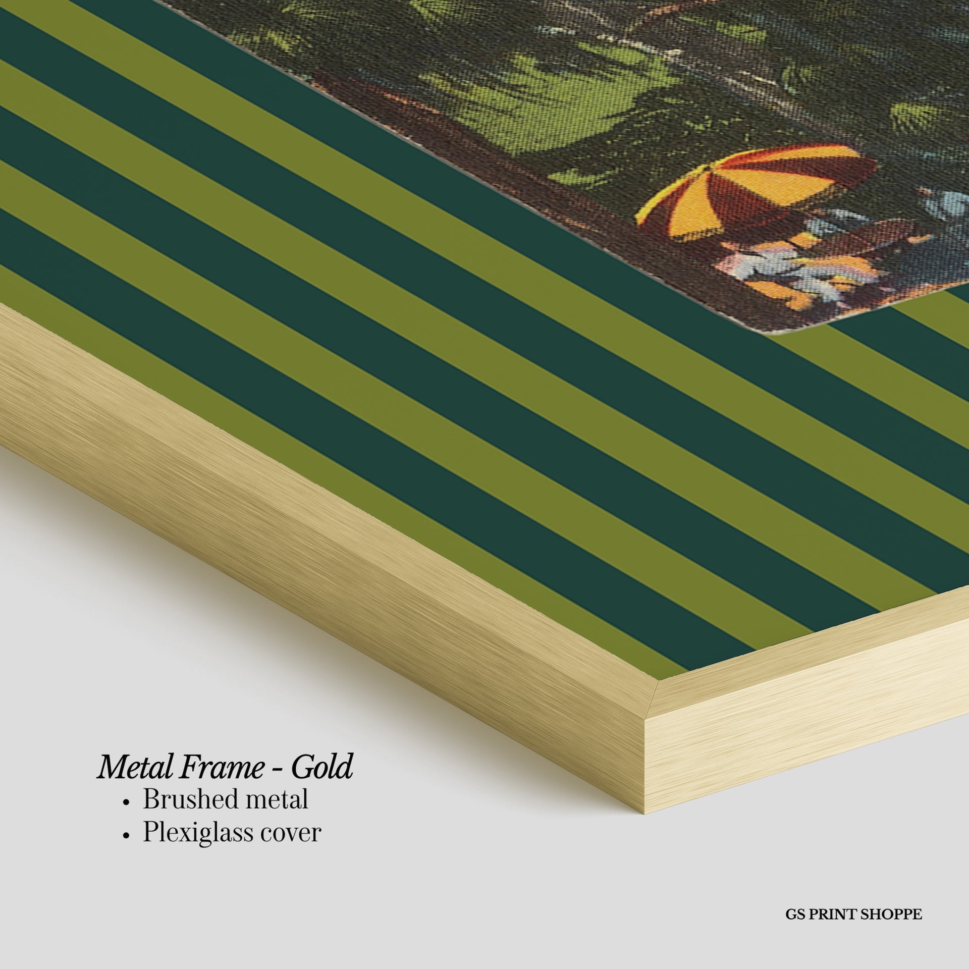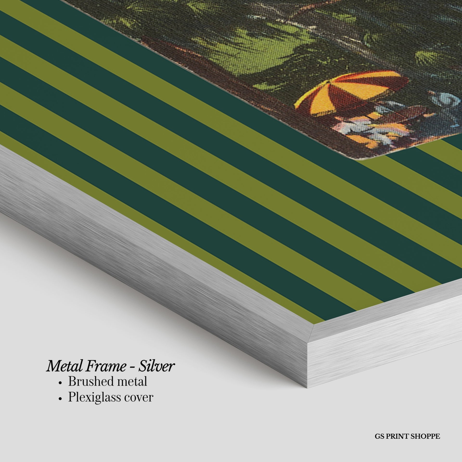 Metal Frame: Sleek and modern, our metal frame is crafted with brushed metal for a polished finish. It comes with durable plexiglass and sturdy metal hangers for horizontal or vertical display.