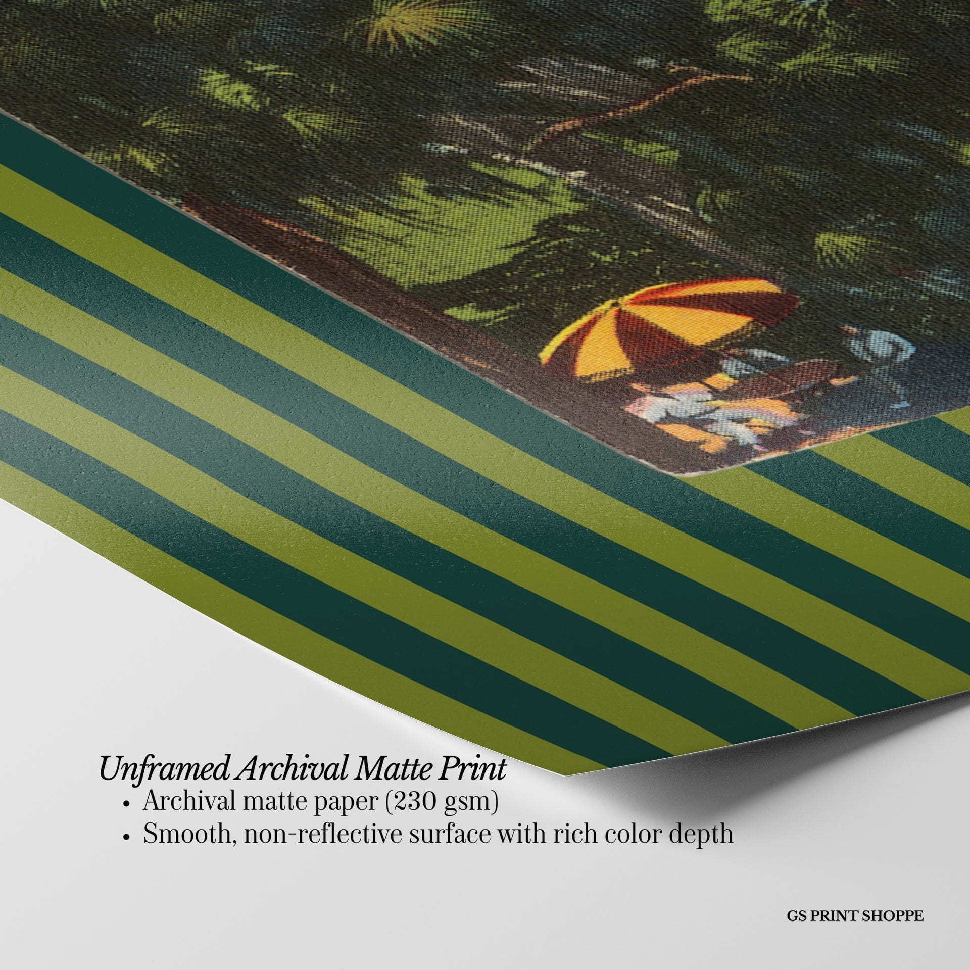 Unframed: This print is professionally printed on archival matte paper (230 gsm), a smooth, acid-free paper with a non-reflective finish. It will be carefully packaged to arrive safely at your door.