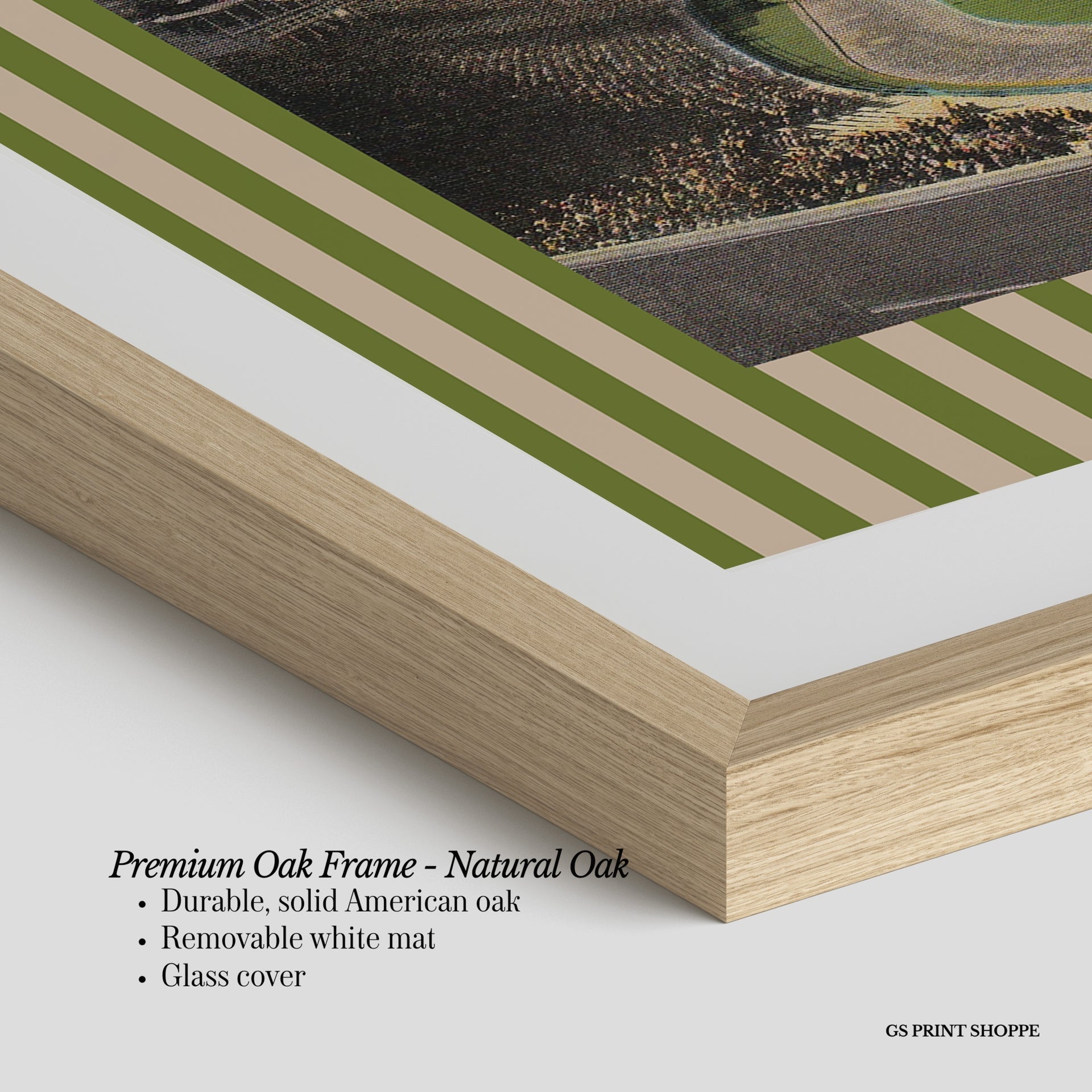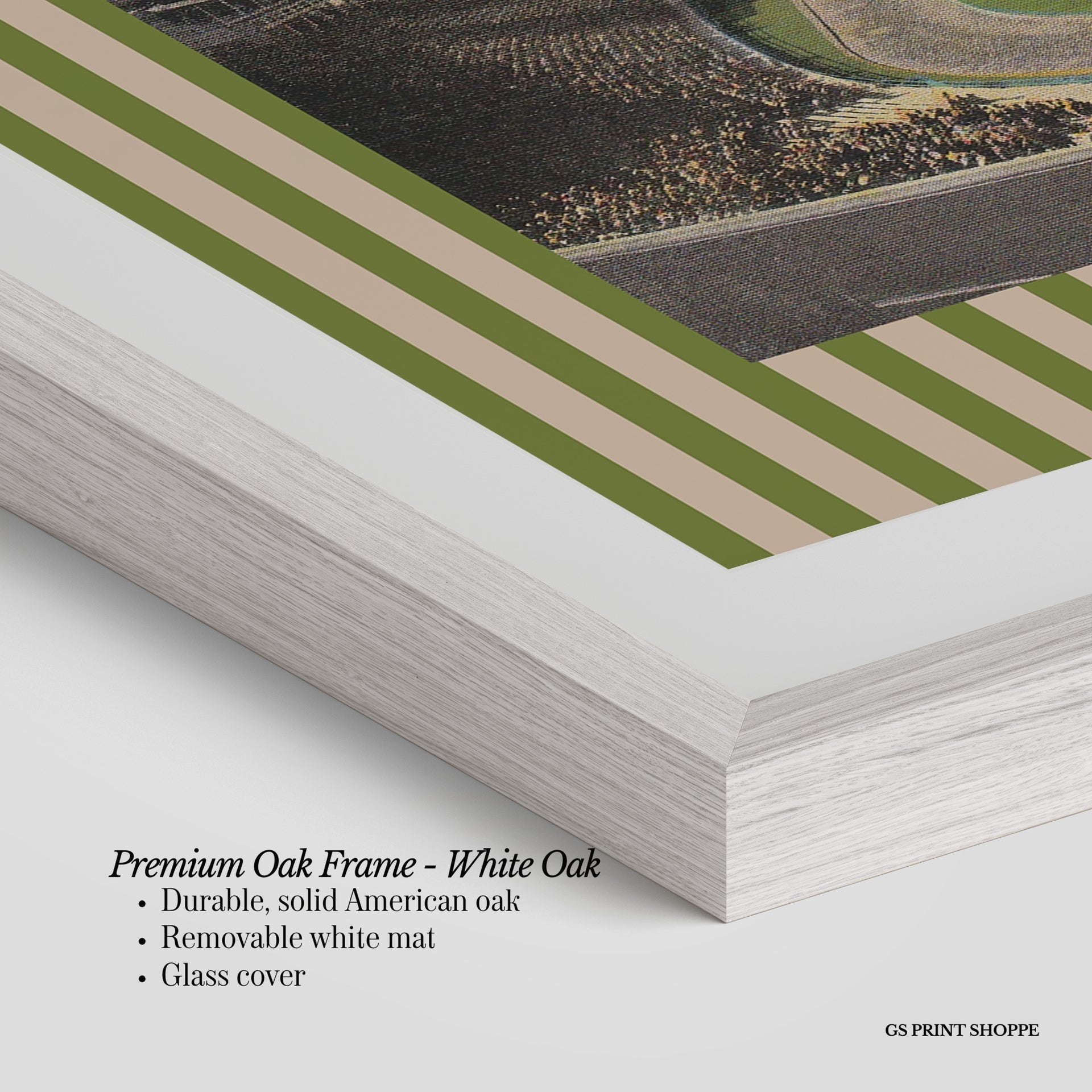 Premium Oak Frame: Our premium oak frame is crafted from solid American oak, offering a warm, natural feel with a high-end finish. We complete this elevated offering with a bright white removable mat and real glass for a versatile and polished look.
