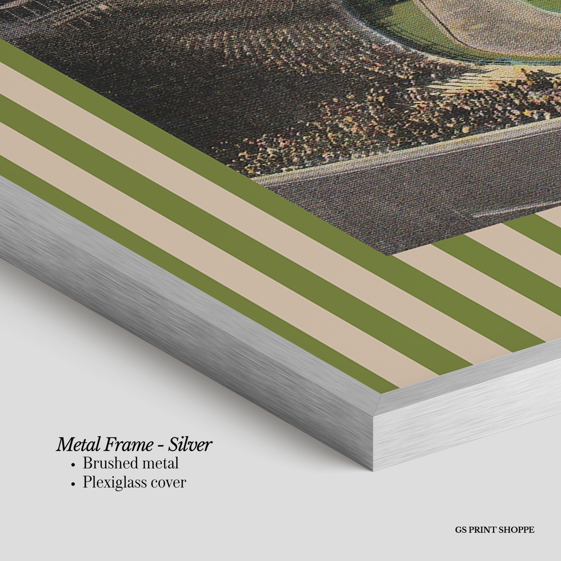 Metal Frame: Sleek and modern, our metal frame is crafted with brushed metal for a polished finish. It comes with durable plexiglass and sturdy metal hangers for horizontal or vertical display.