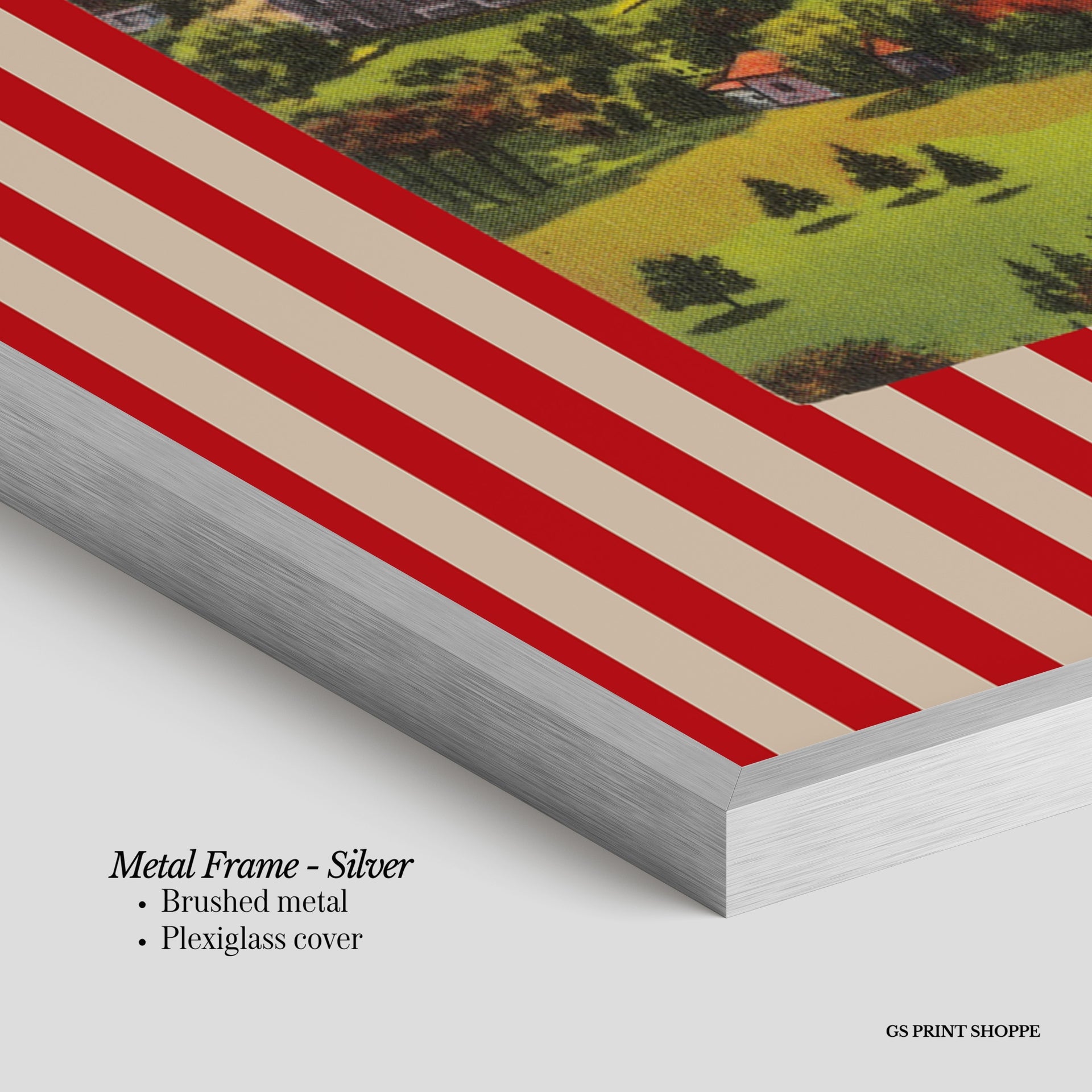 Metal Frame: Sleek and modern, our metal frame is crafted with brushed metal for a polished finish. It comes with durable plexiglass and sturdy metal hangers for horizontal or vertical display.