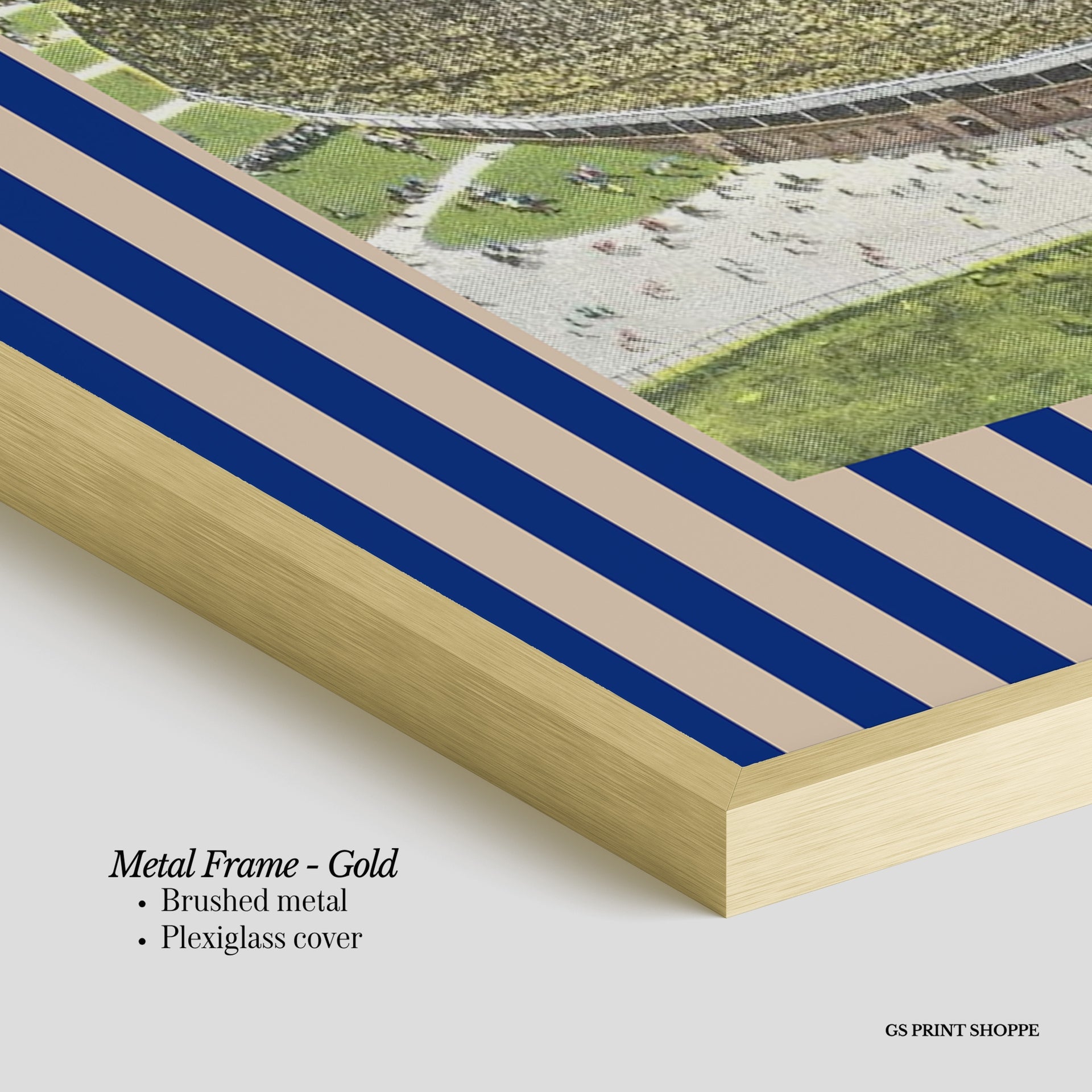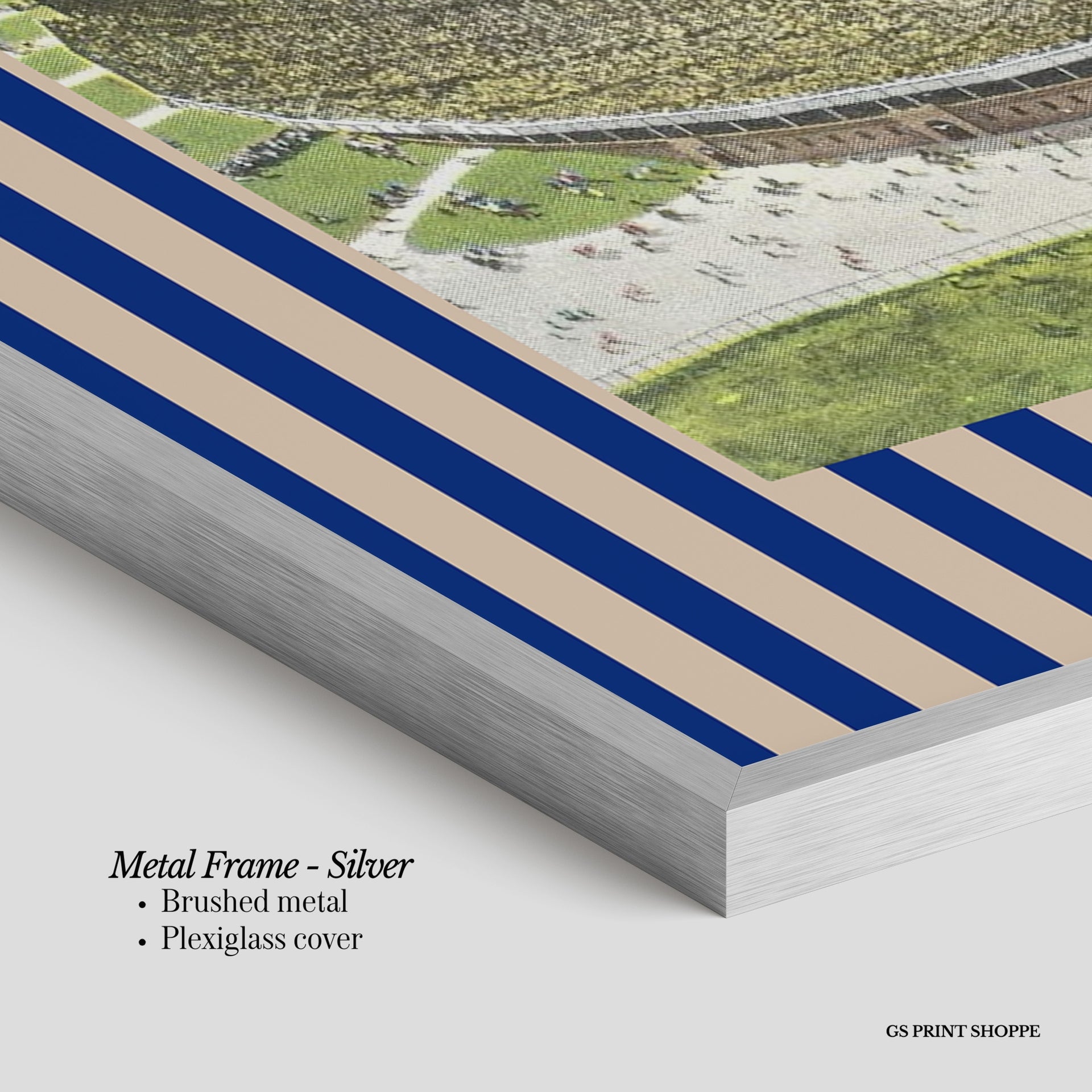 Metal Frame: Sleek and modern, our metal frame is crafted with brushed metal for a polished finish. It comes with durable plexiglass and sturdy metal hangers for horizontal or vertical display.