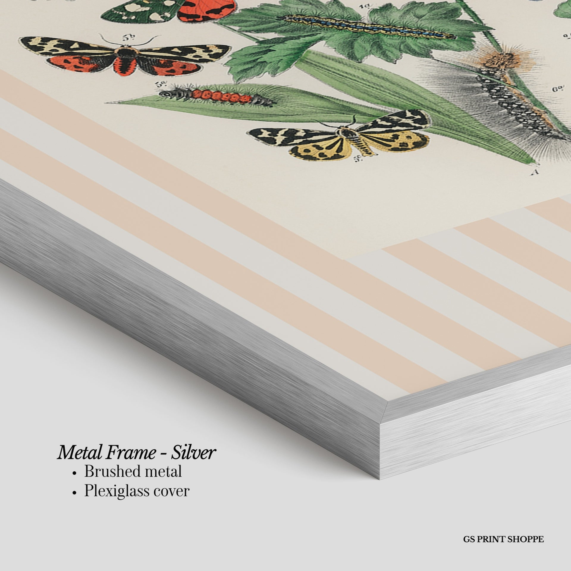 Metal Frame: Sleek and modern, our metal frame is crafted with brushed metal for a polished finish. It comes with durable plexiglass and sturdy metal hangers for horizontal or vertical display.