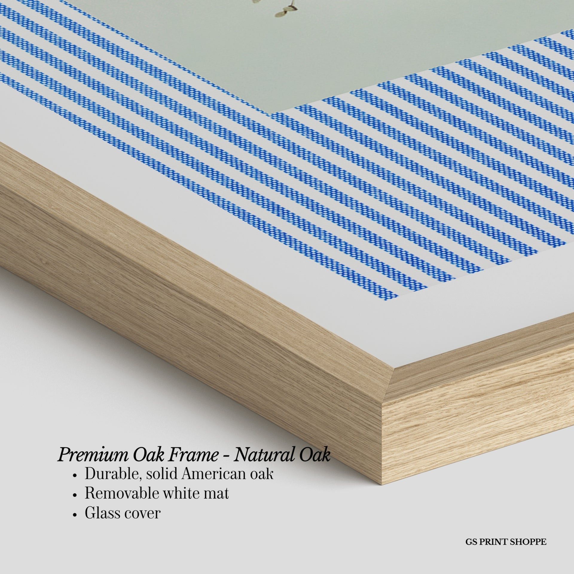 Premium Oak Frame: Our premium oak frame is crafted from solid American oak, offering a warm, natural feel with a high-end finish. We complete this elevated offering with a bright white removable mat and real glass for a versatile and polished look.