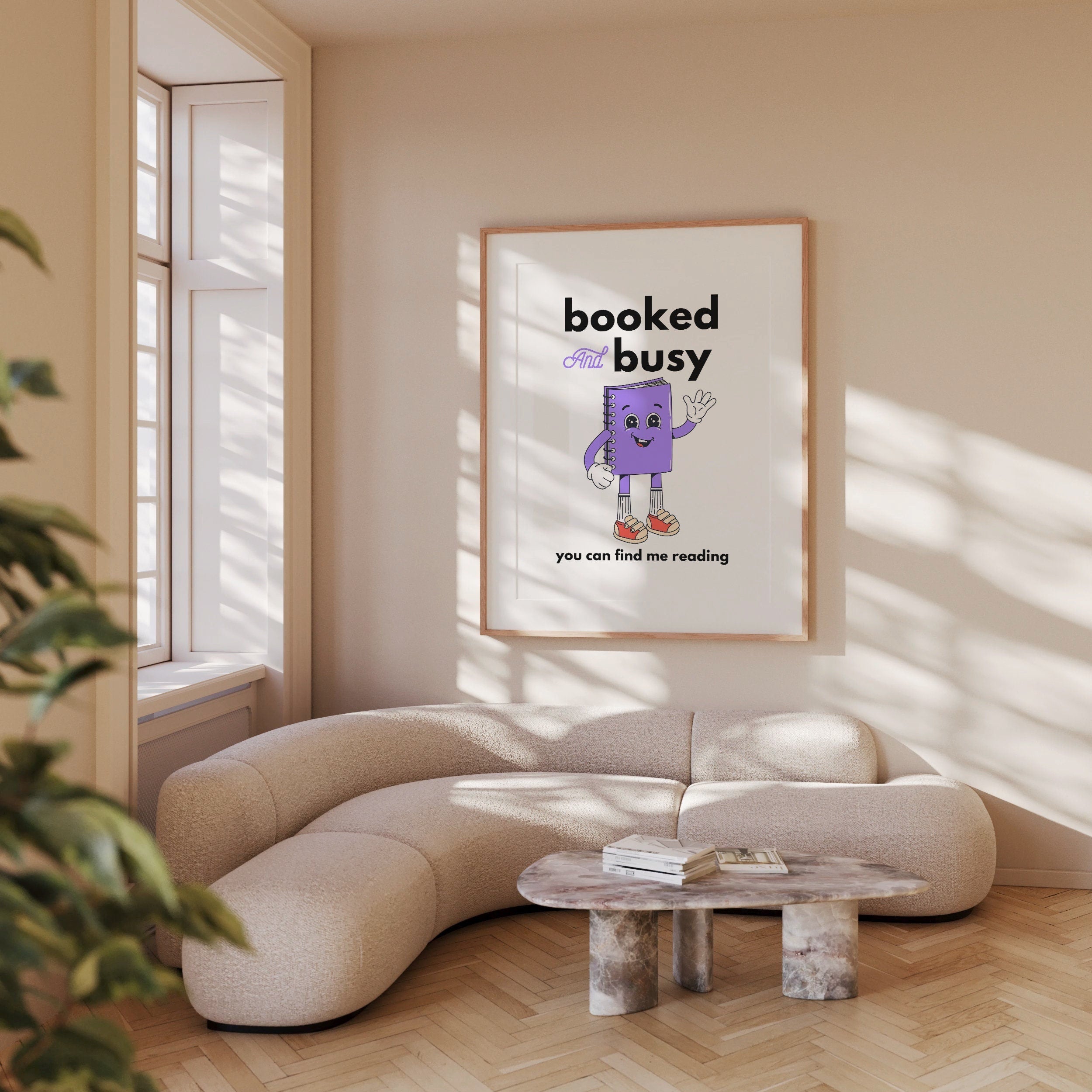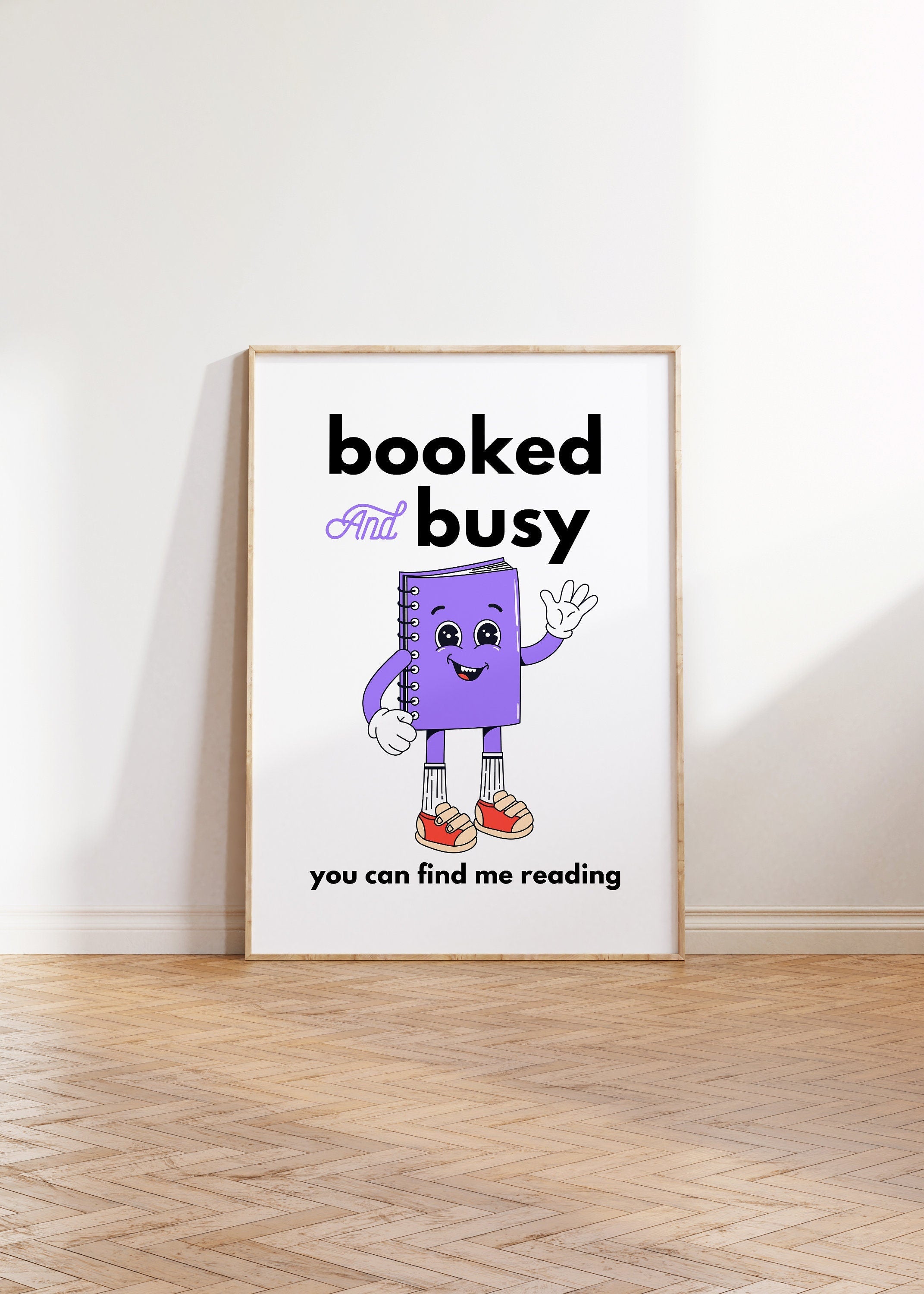 Booked and Busy Cartoon Vertical Digital Art Print - Purple