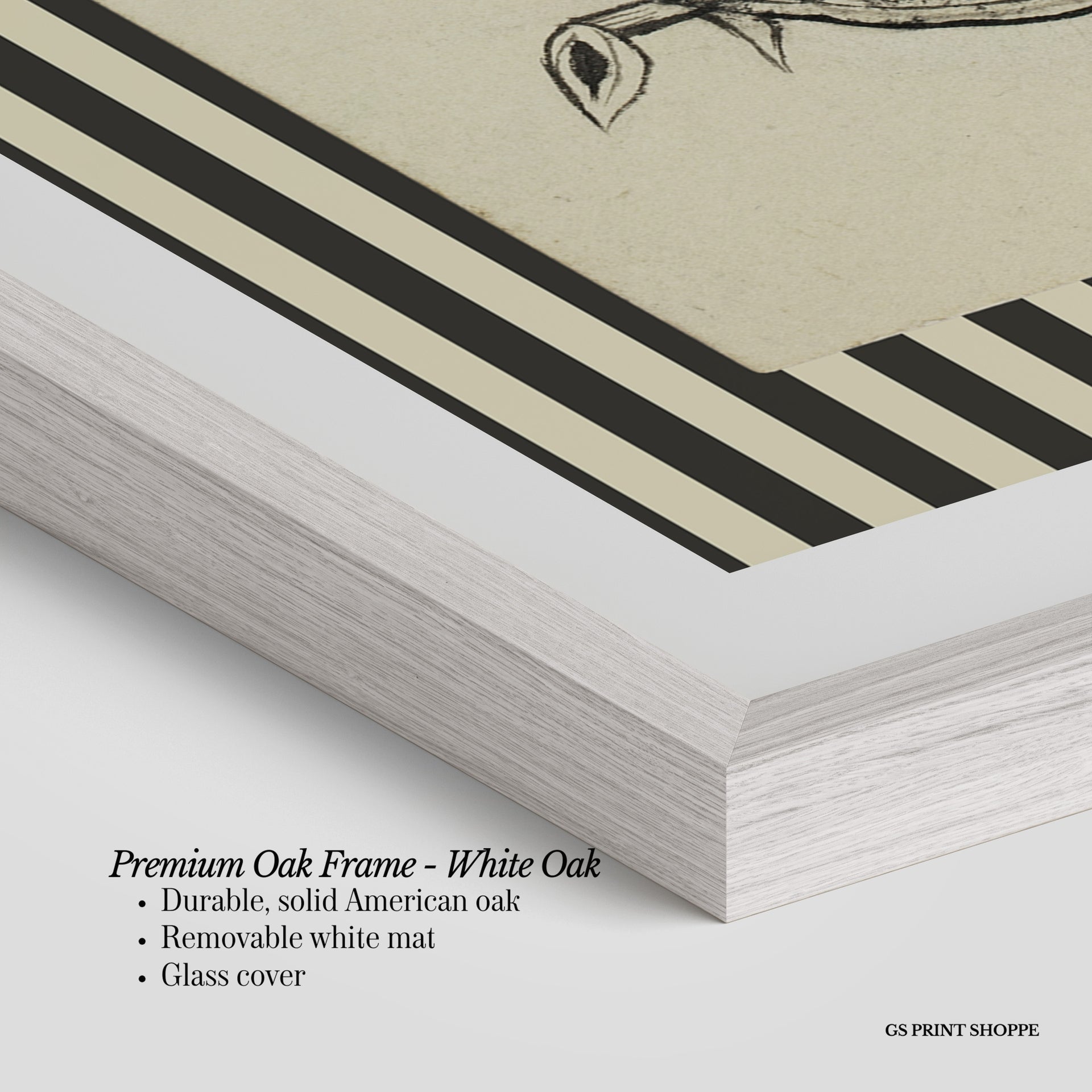 Premium Oak Frame: Our premium oak frame is crafted from solid American oak, offering a warm, natural feel with a high-end finish. We complete this elevated offering with a bright white removable mat and real glass for a versatile and polished look.