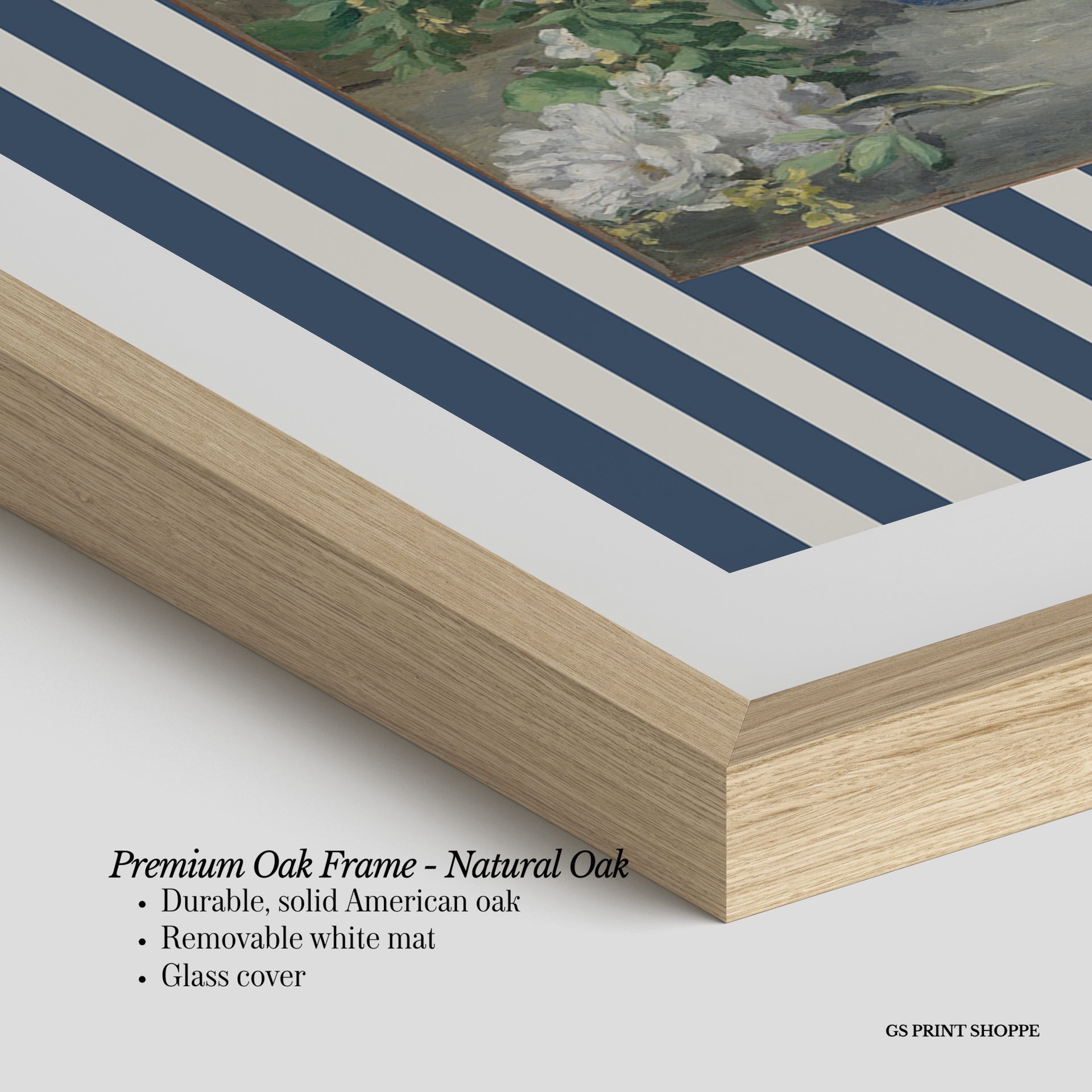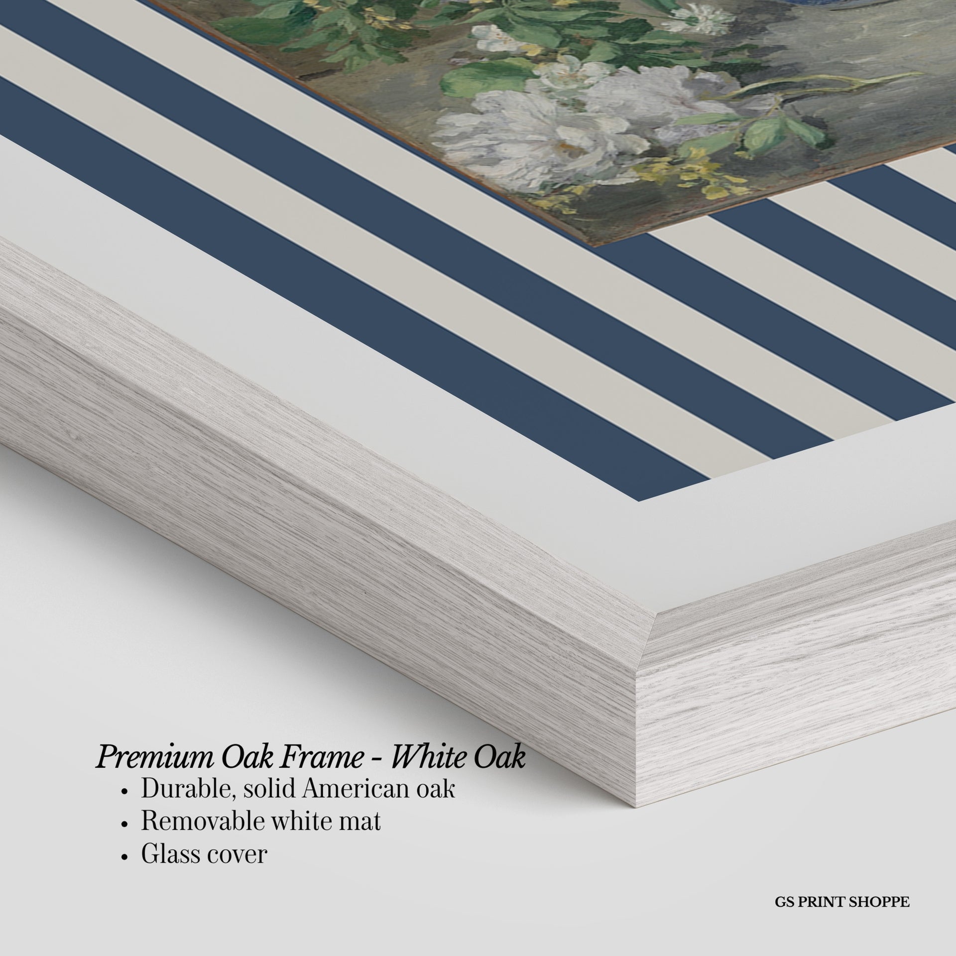 Premium Oak Frame: Our premium oak frame is crafted from solid American oak, offering a warm, natural feel with a high-end finish. We complete this elevated offering with a bright white removable mat and real glass for a versatile and polished look.