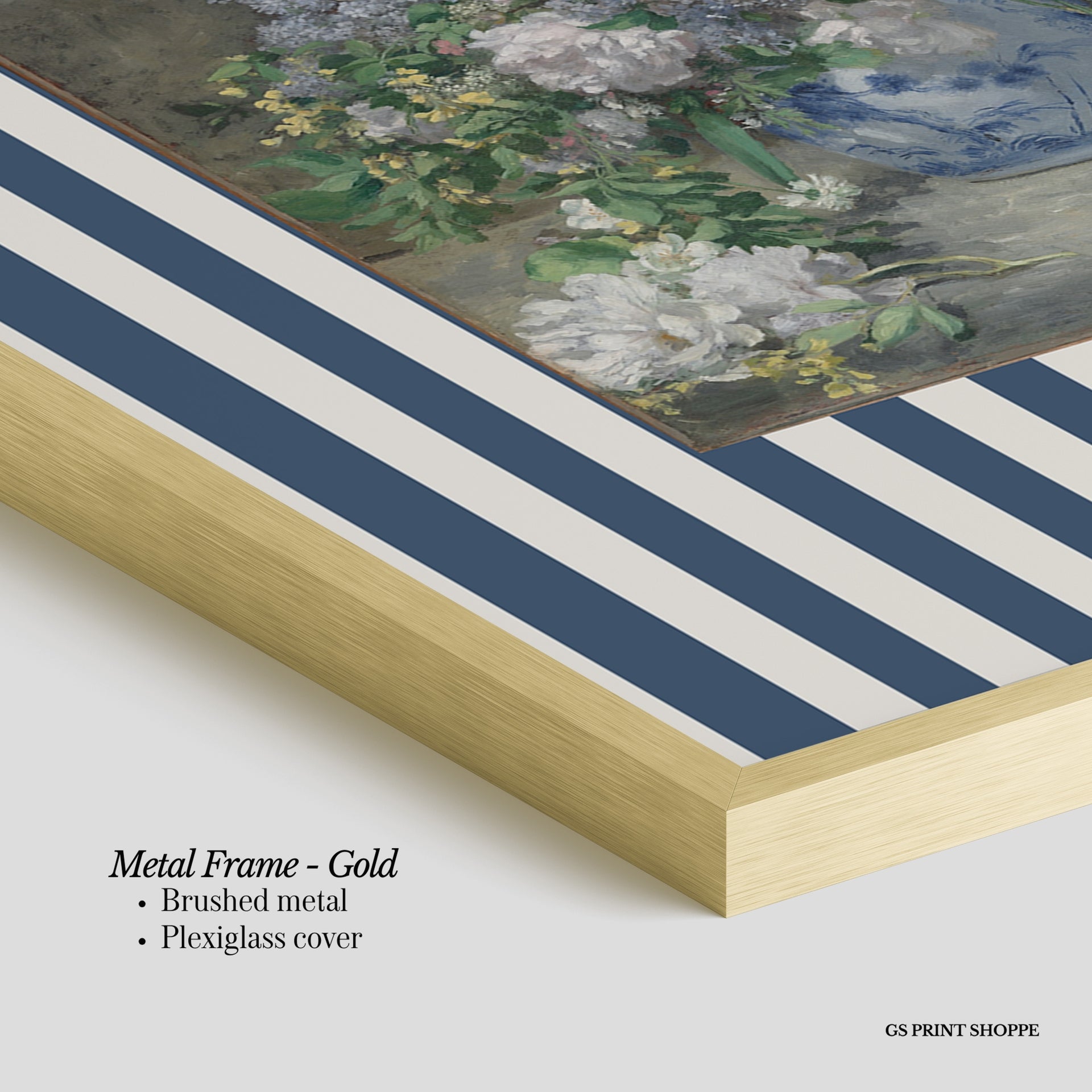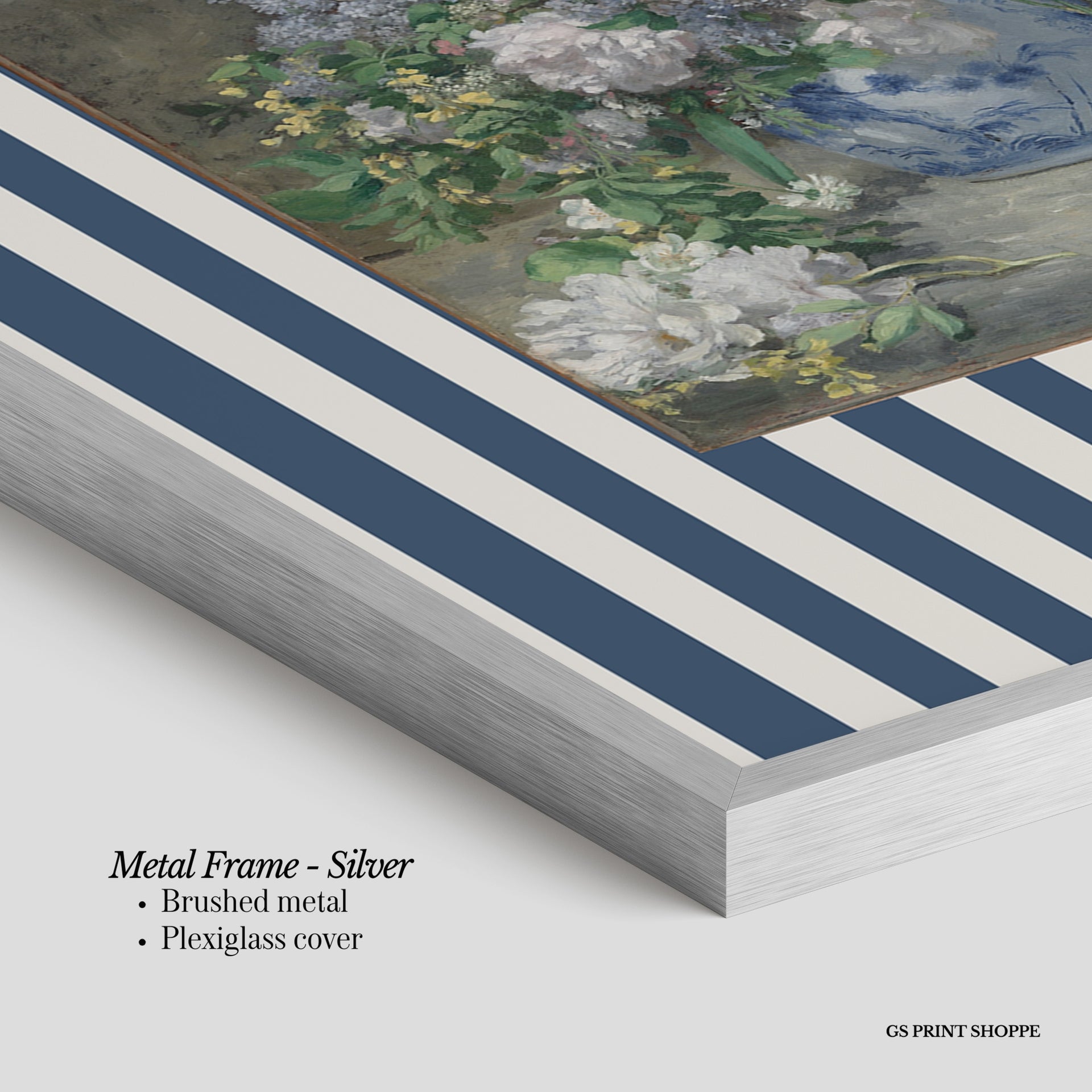Metal Frame: Sleek and modern, our metal frame is crafted with brushed metal for a polished finish. It comes with durable plexiglass and sturdy metal hangers for horizontal or vertical display.