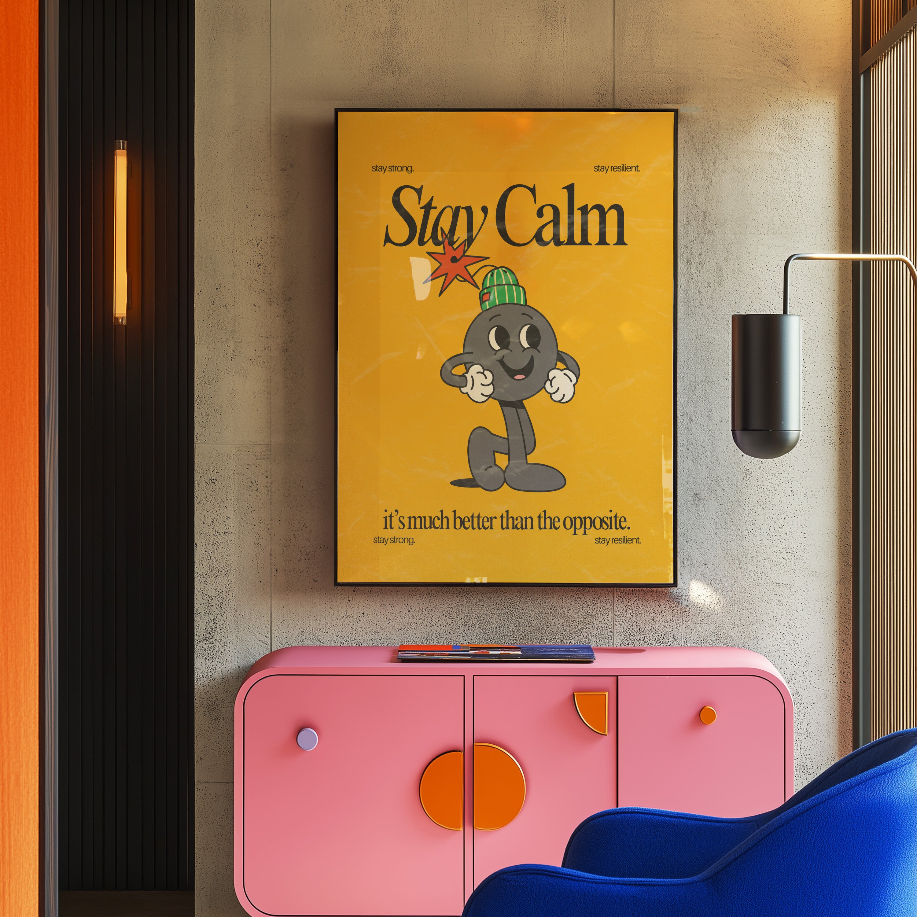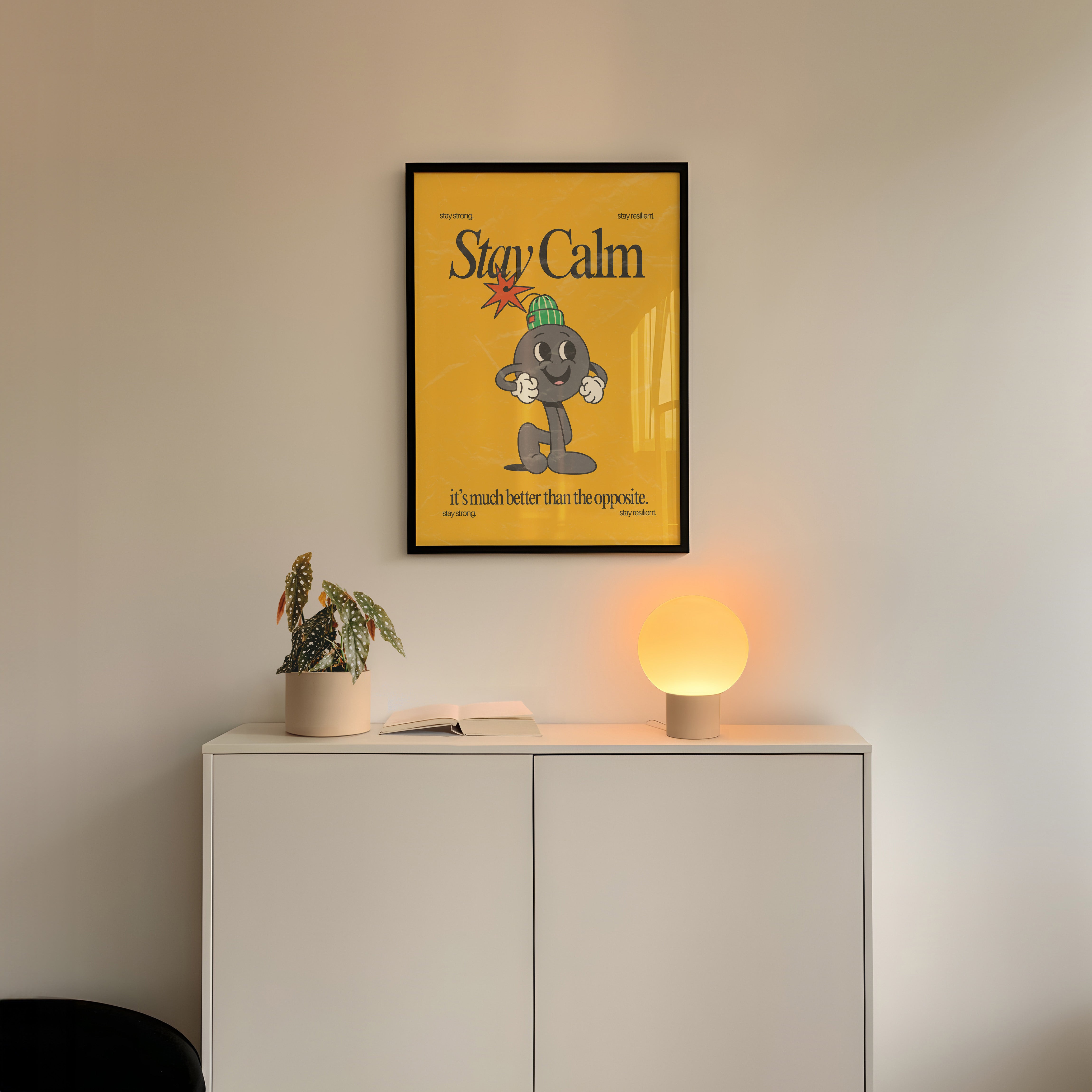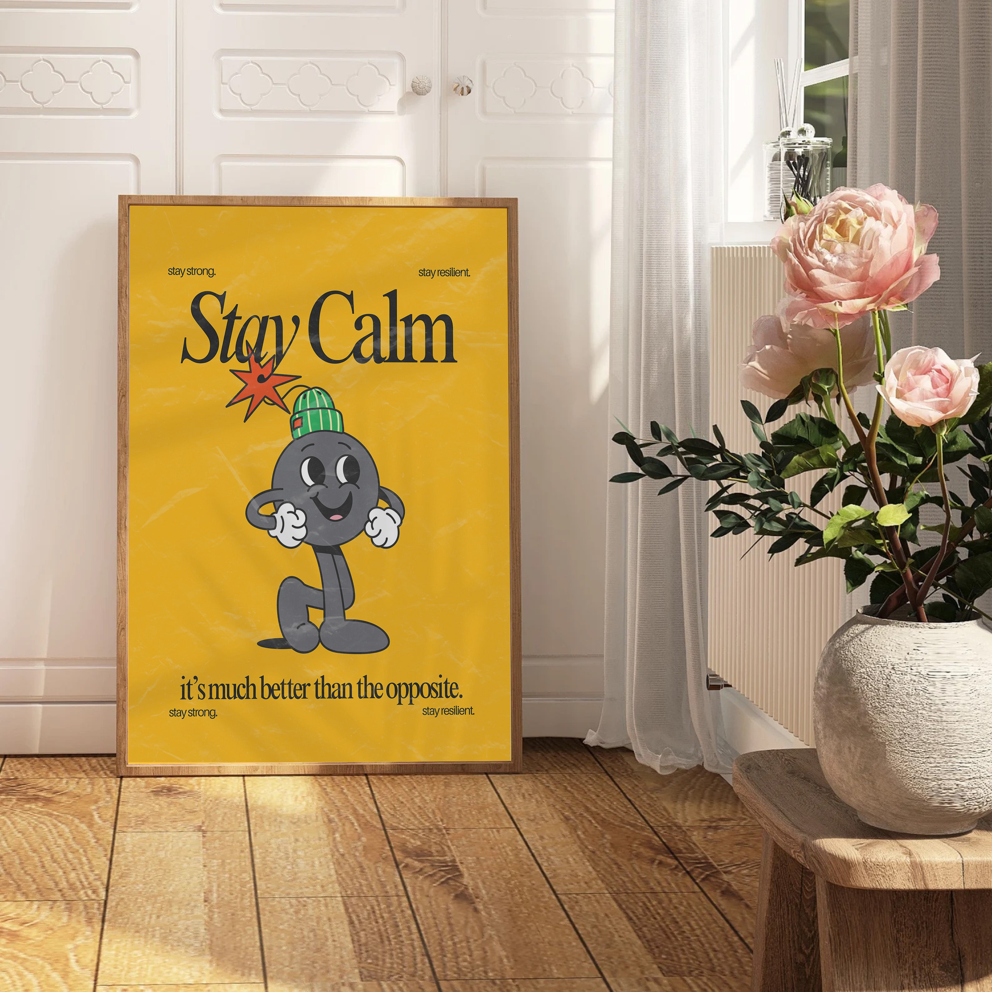 Stay Calm Vertical Art Print - Yellow