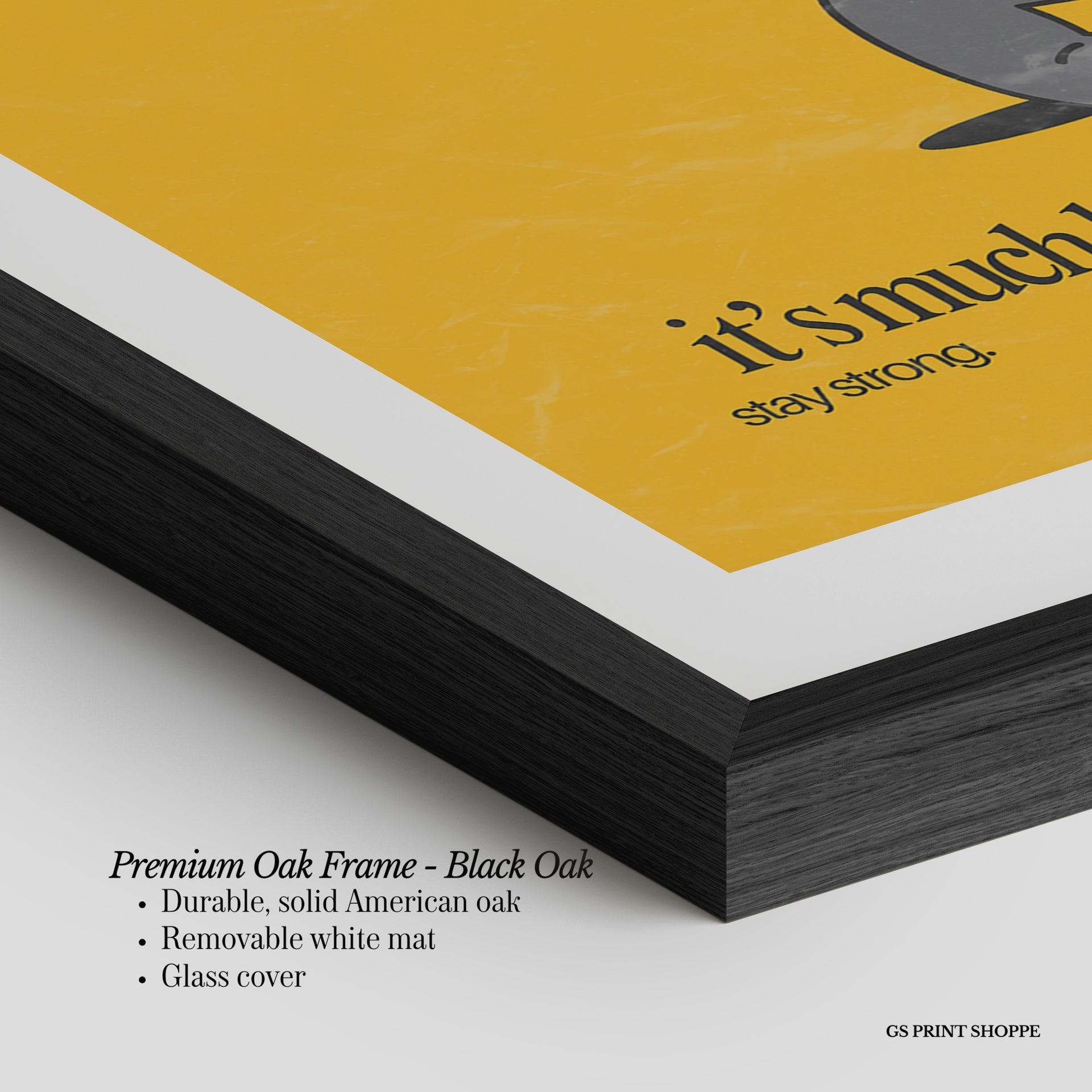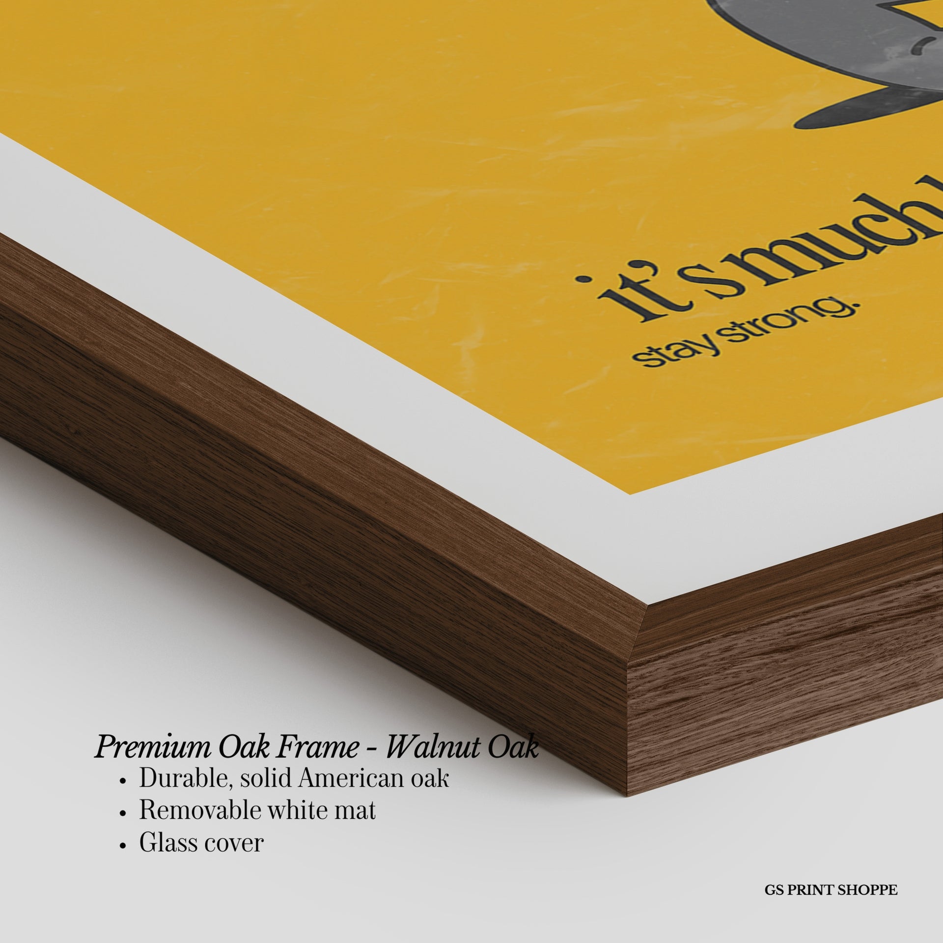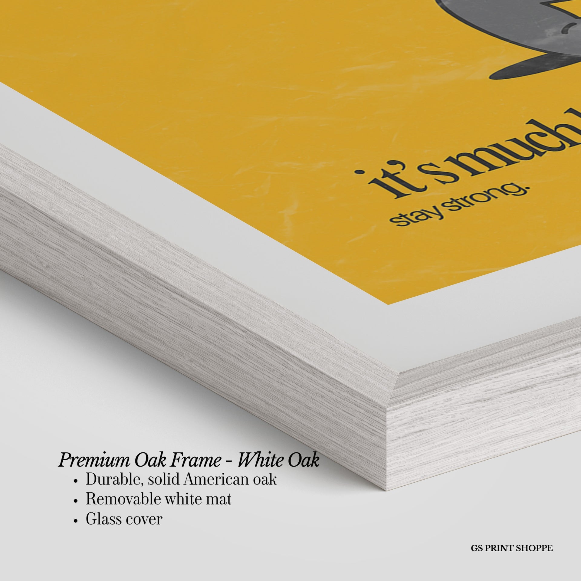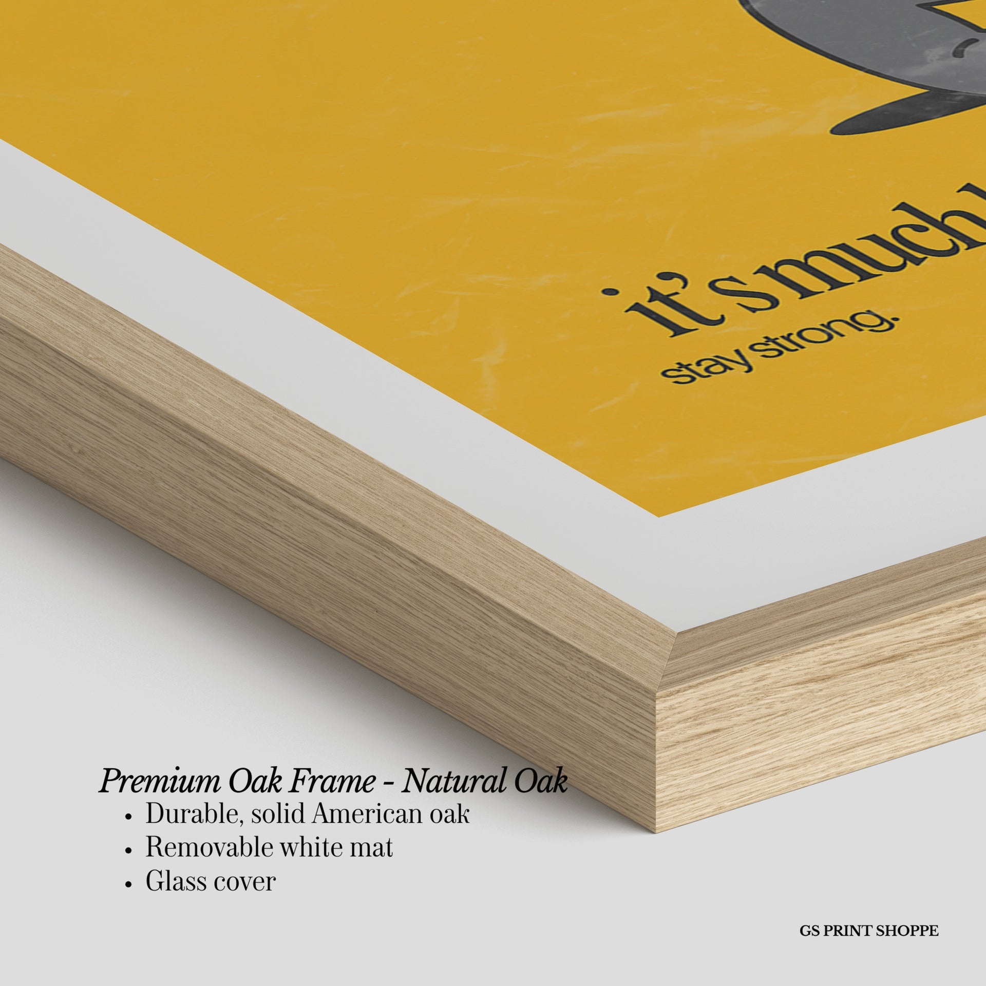 Premium Oak Frame: Our premium oak frame is crafted from solid American oak, offering a warm, natural feel with a high-end finish. We complete this elevated offering with a bright white removable mat and real glass for a versatile and polished look.