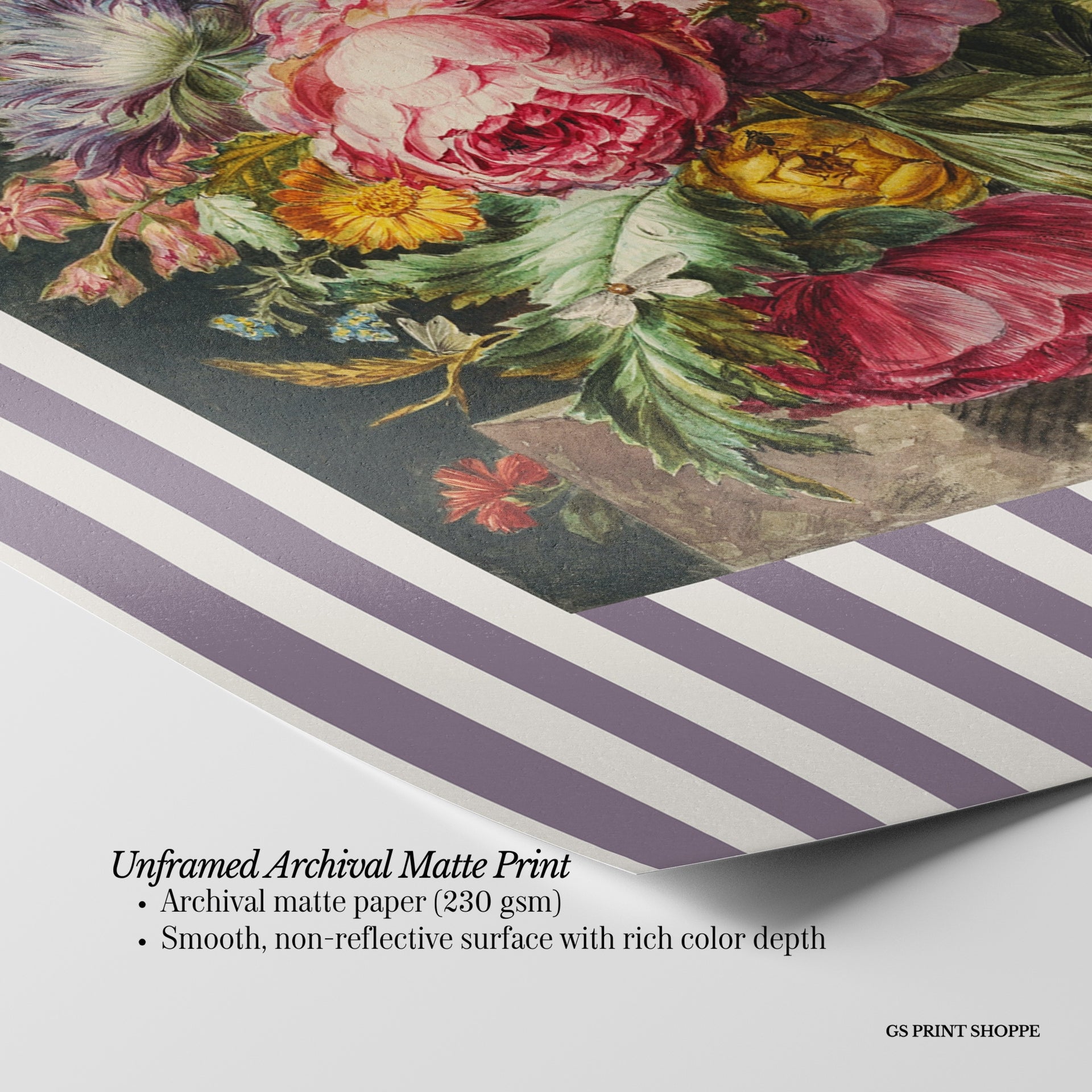 Unframed: This print is professionally printed on archival matte paper (230 gsm), a smooth, acid-free paper with a non-reflective finish. It will be carefully packaged to arrive safely at your door.