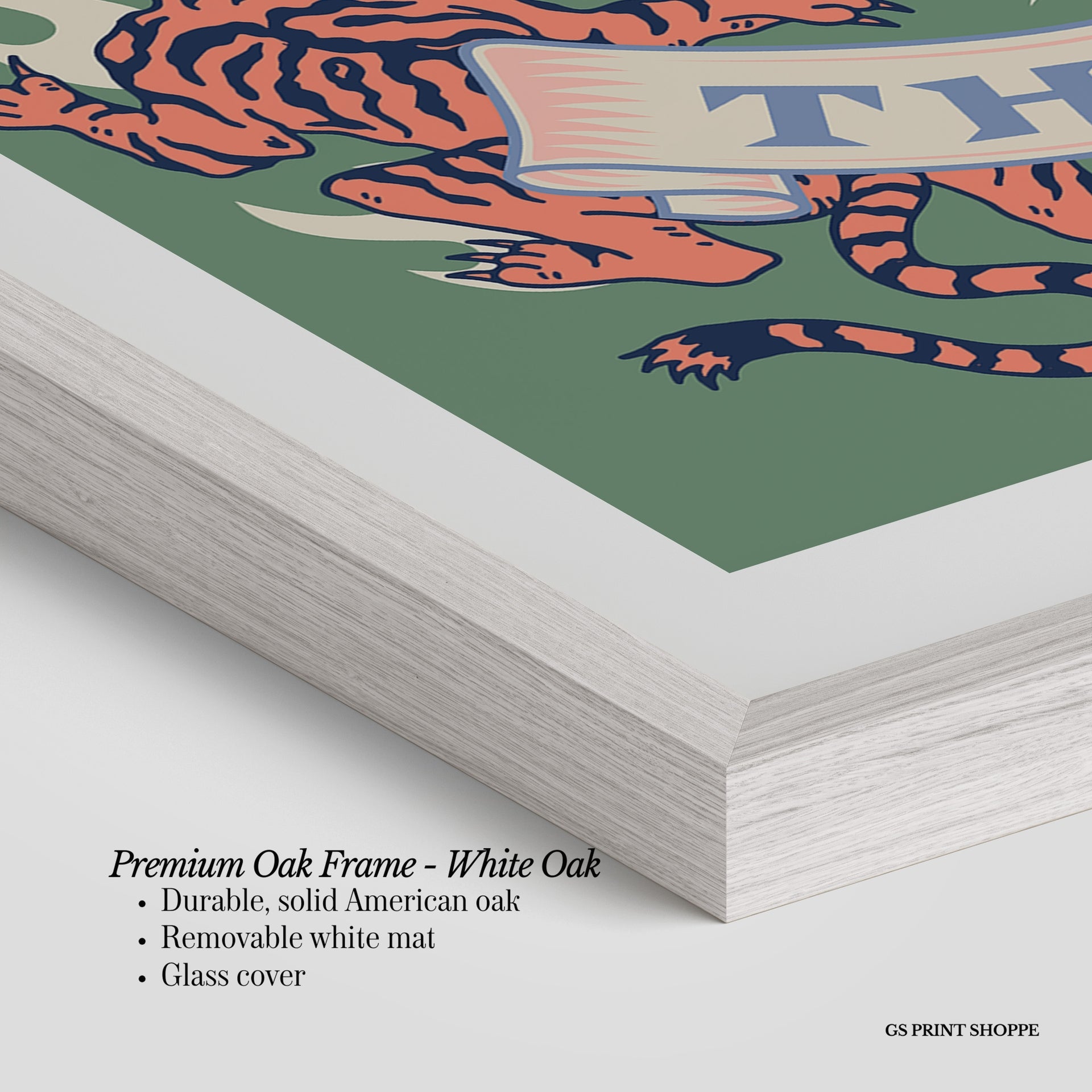 Premium Oak Frame: Our premium oak frame is crafted from solid American oak, offering a warm, natural feel with a high-end finish. We complete this elevated offering with a bright white removable mat and real glass for a versatile and polished look.