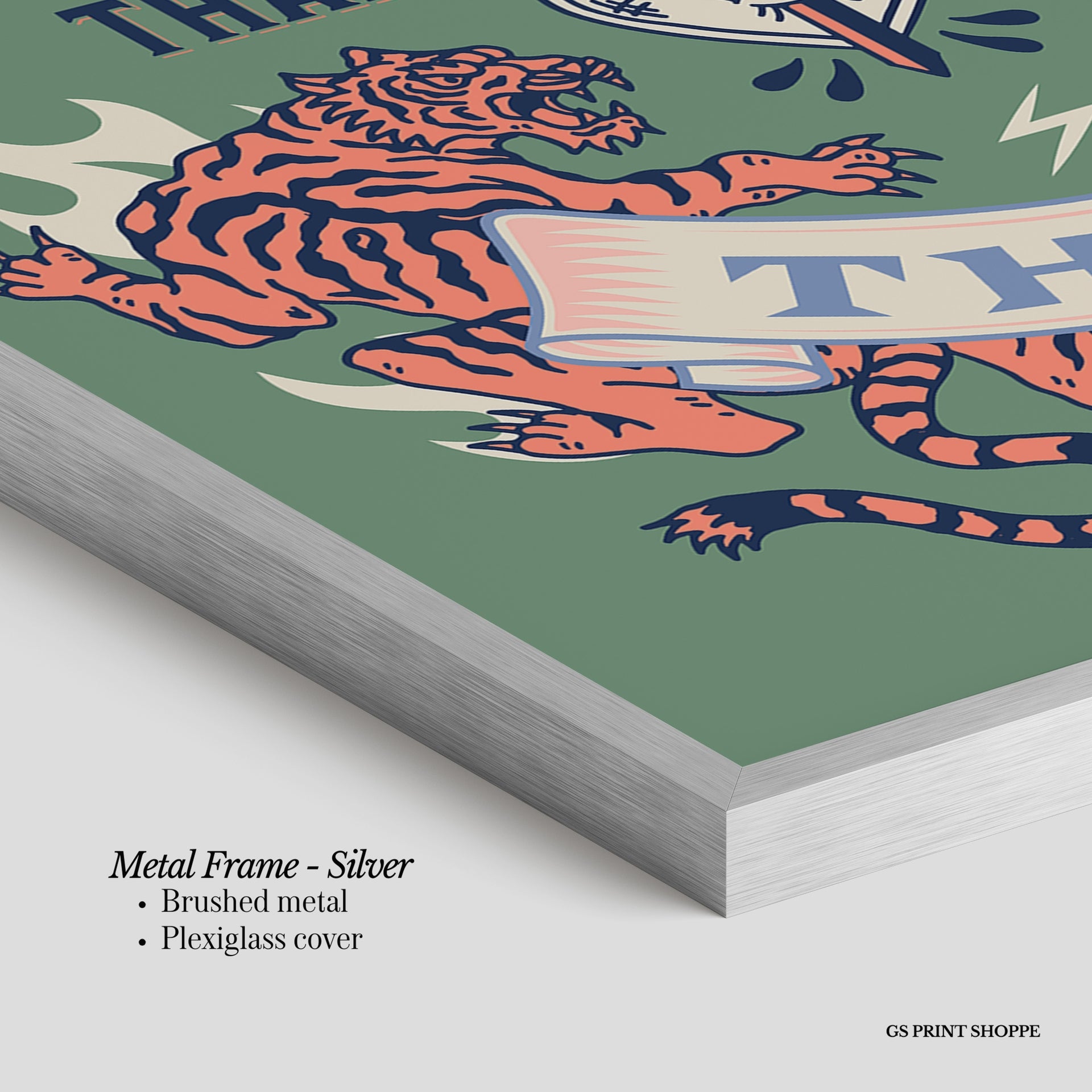 Metal Frame: Sleek and modern, our metal frame is crafted with brushed metal for a polished finish. It comes with durable plexiglass and sturdy metal hangers for horizontal or vertical display.