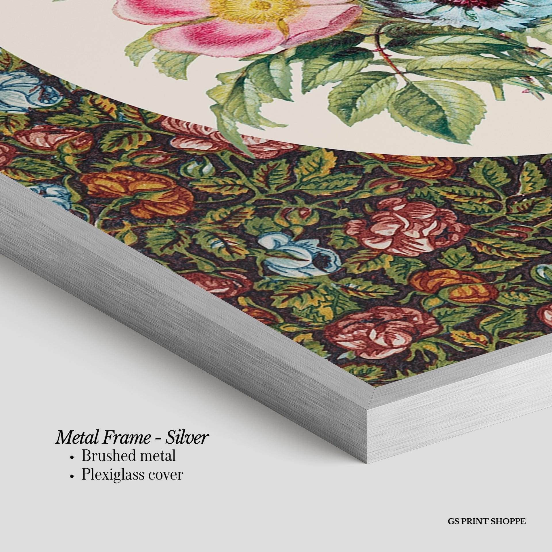 Metal Frame: Sleek and modern, our metal frame is crafted with brushed metal for a polished finish. It comes with durable plexiglass and sturdy metal hangers for horizontal or vertical display.