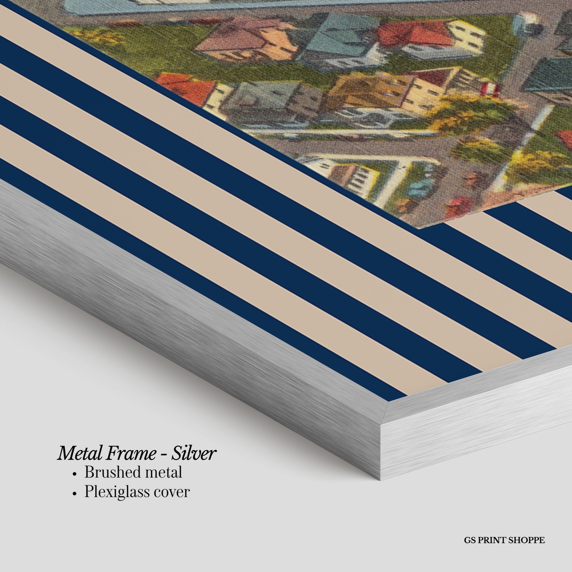 Metal Frame: Sleek and modern, our metal frame is crafted with brushed metal for a polished finish. It comes with durable plexiglass and sturdy metal hangers for horizontal or vertical display.