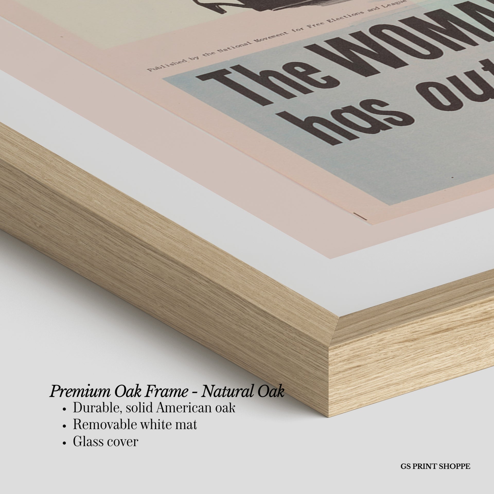 Premium Oak Frame: Our premium oak frame is crafted from solid American oak, offering a warm, natural feel with a high-end finish. We complete this elevated offering with a bright white removable mat and real glass for a versatile and polished look.