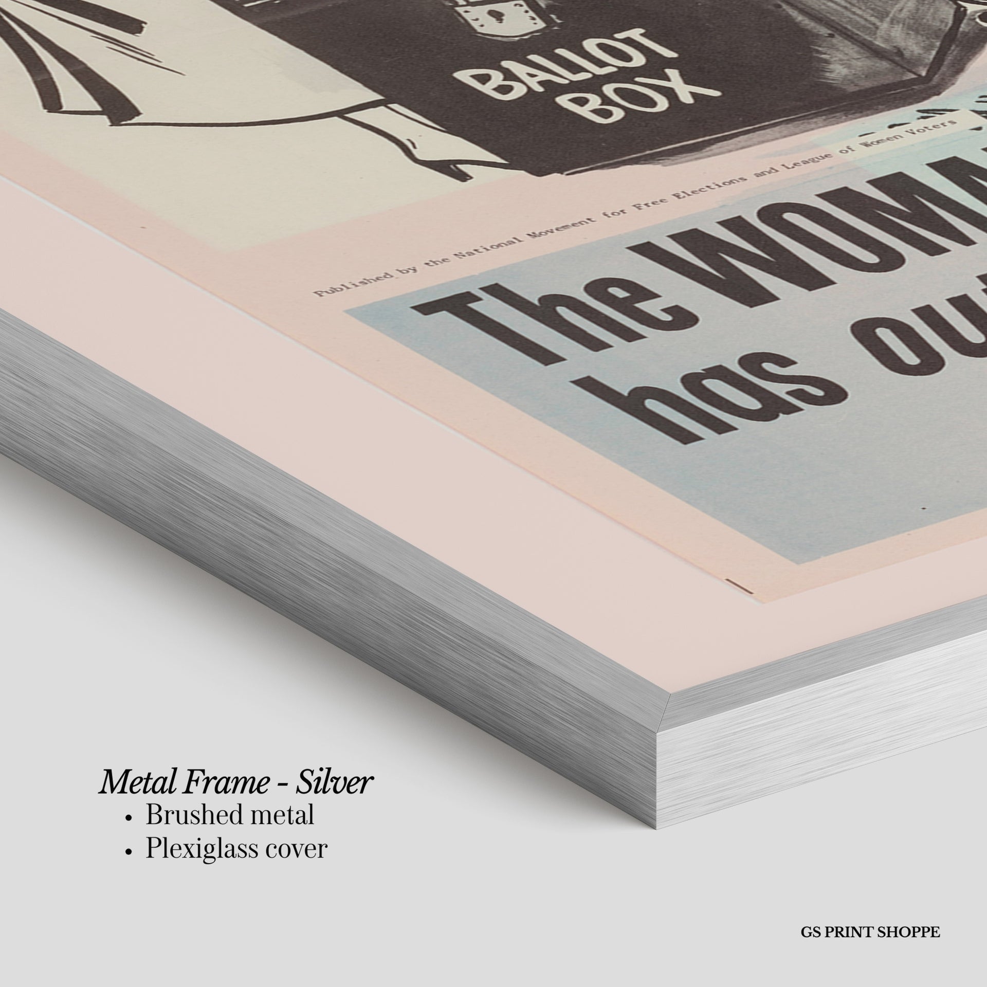 Metal Frame: Sleek and modern, our metal frame is crafted with brushed metal for a polished finish. It comes with durable plexiglass and sturdy metal hangers for horizontal or vertical display.