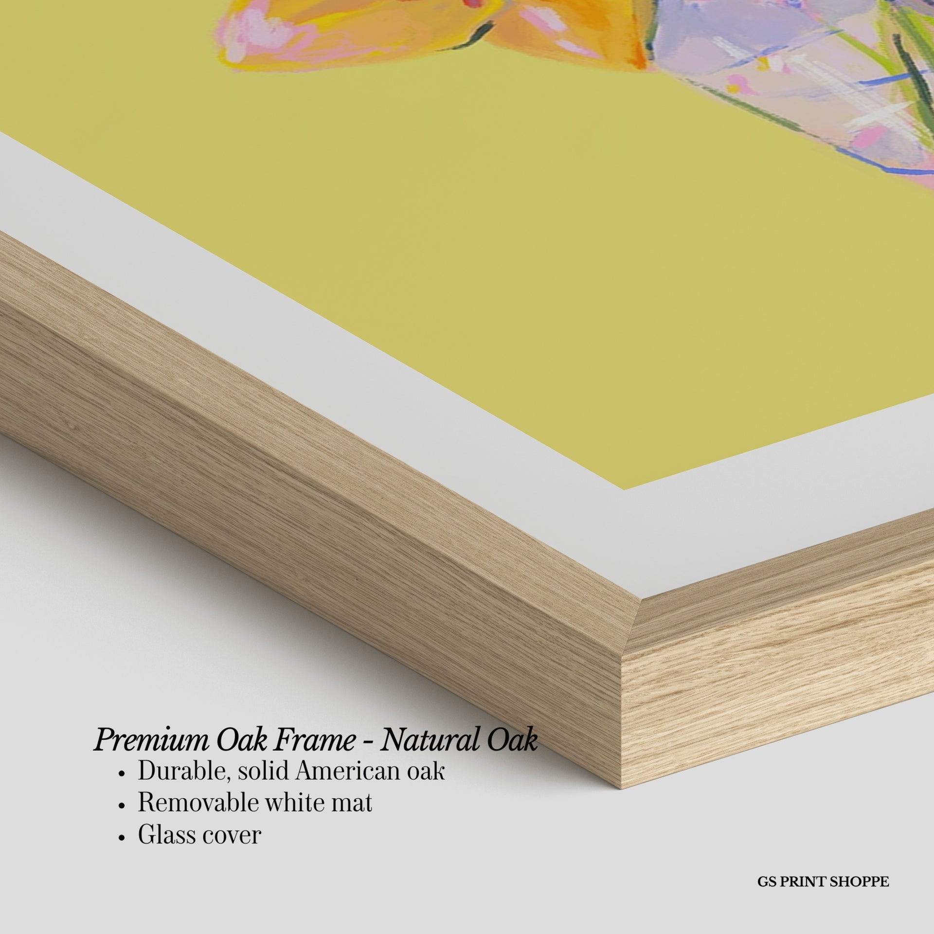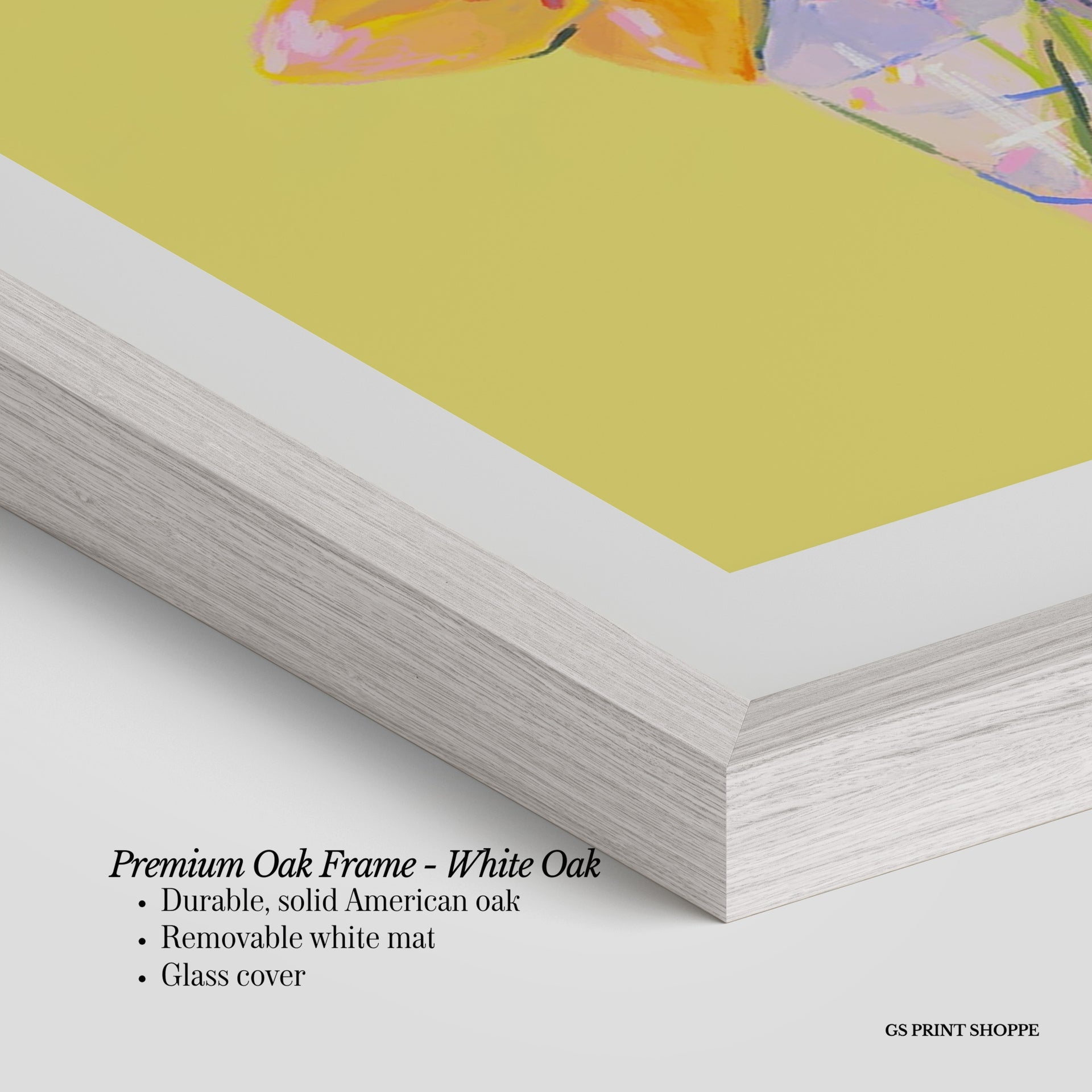 Premium Oak Frame: Our premium oak frame is crafted from solid American oak, offering a warm, natural feel with a high-end finish. We complete this elevated offering with a bright white removable mat and real glass for a versatile and polished look.