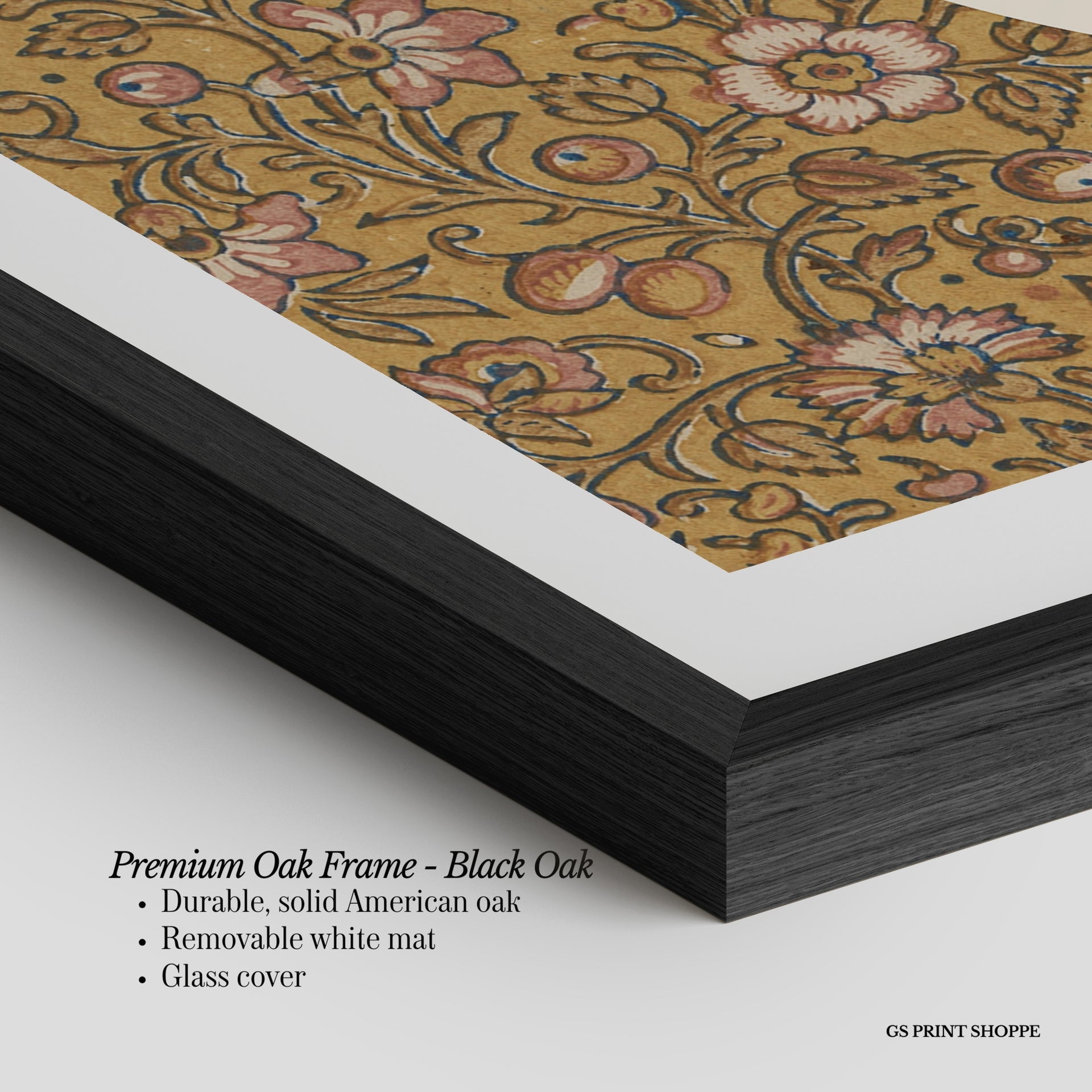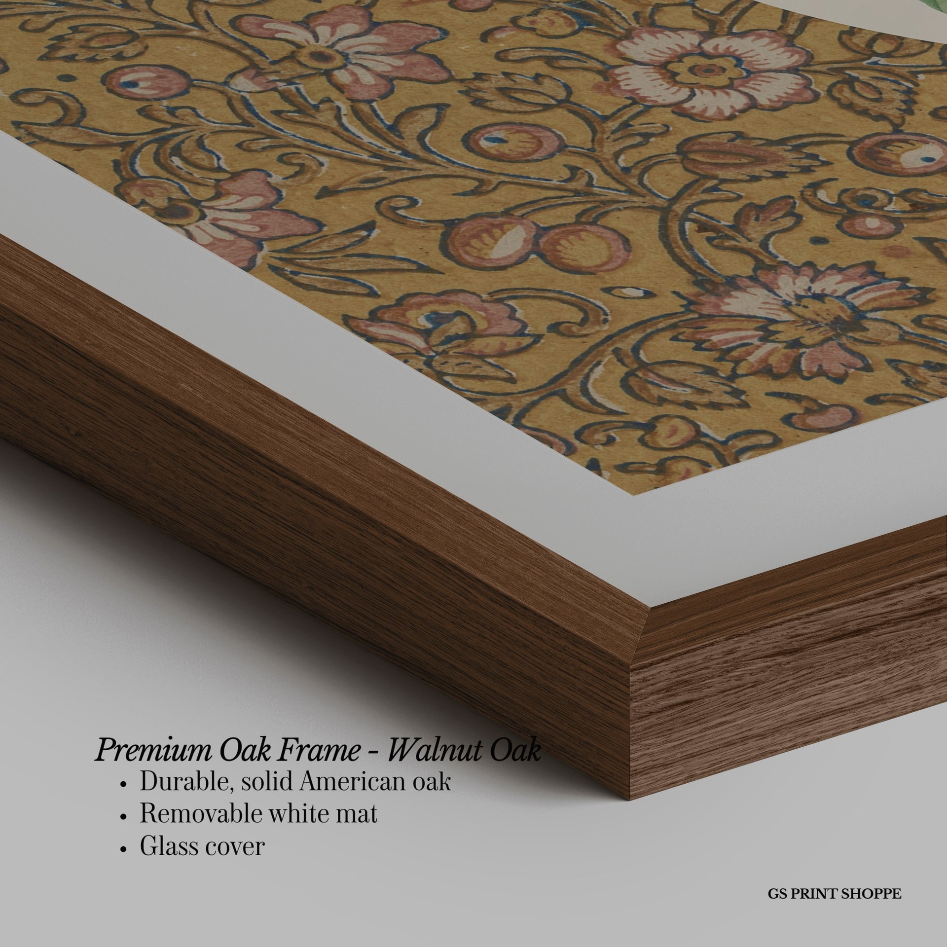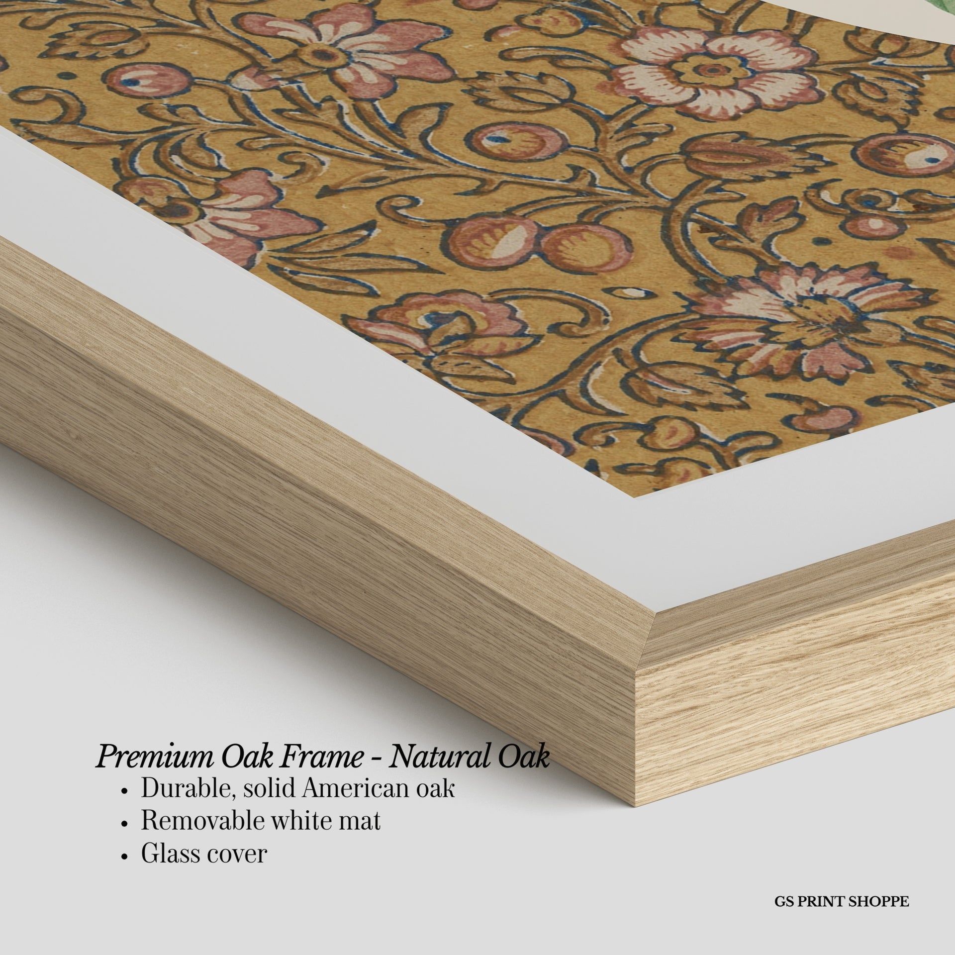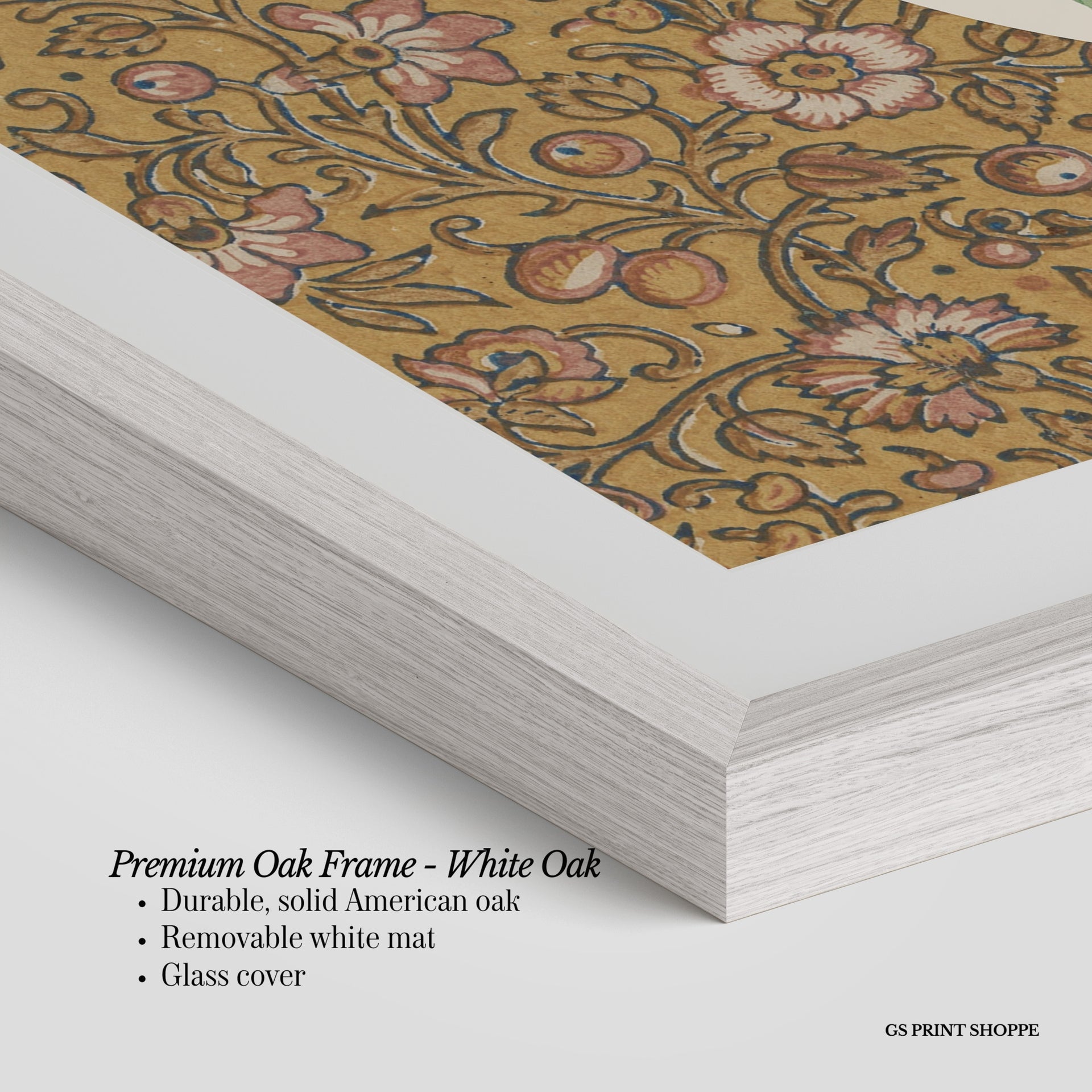 Premium Oak Frame: Our premium oak frame is crafted from solid American oak, offering a warm, natural feel with a high-end finish. We complete this elevated offering with a bright white removable mat and real glass for a versatile and polished look.