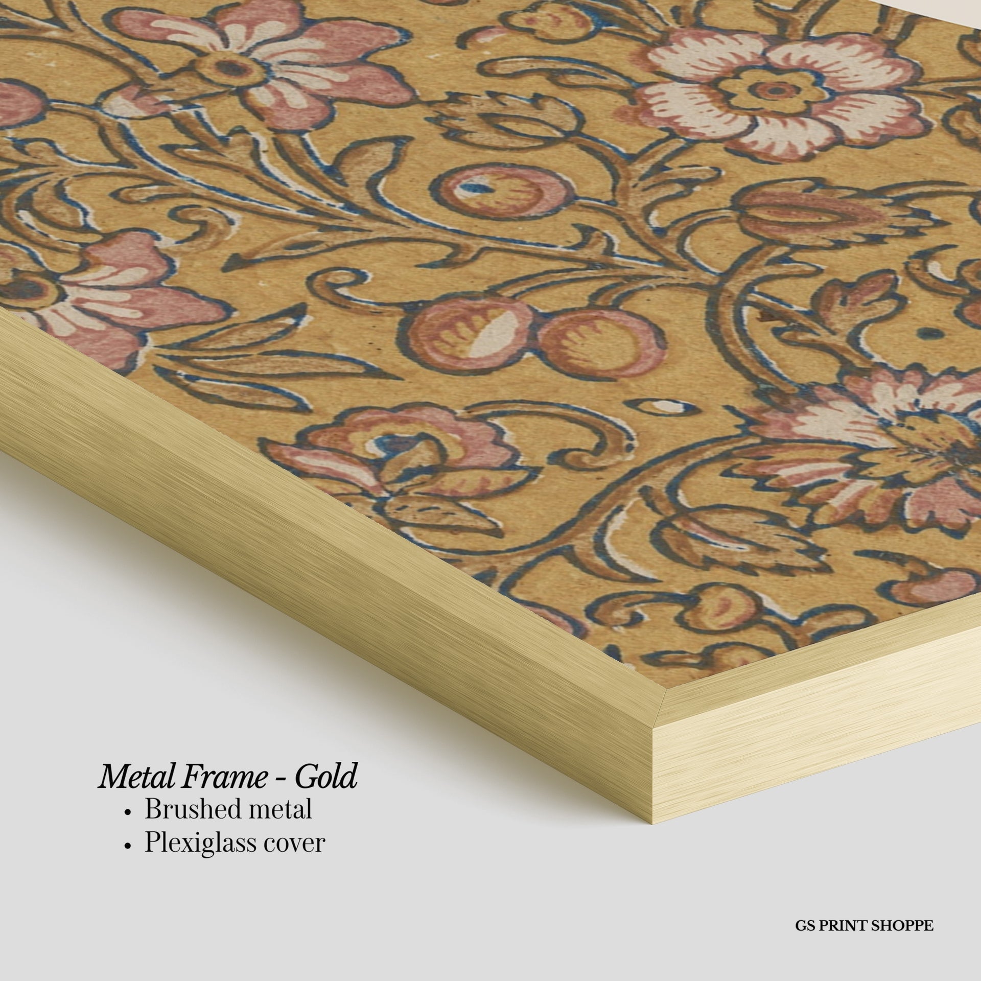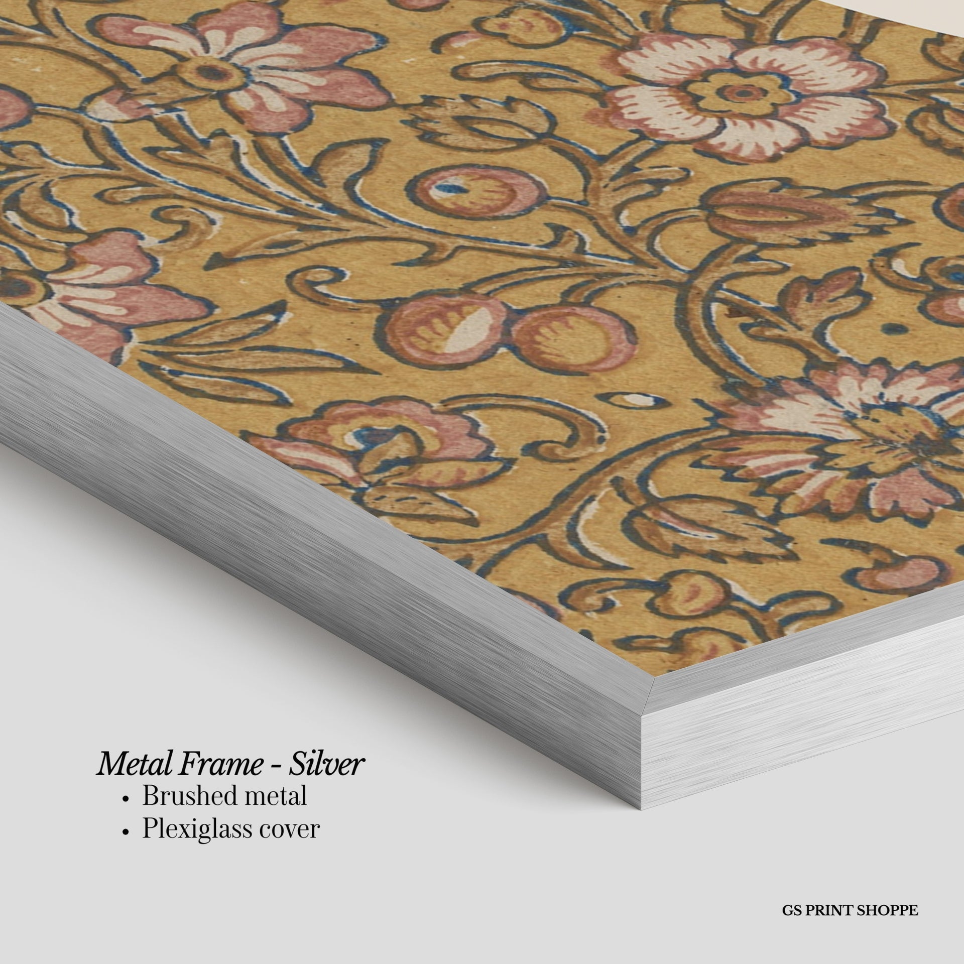 Metal Frame: Sleek and modern, our metal frame is crafted with brushed metal for a polished finish. It comes with durable plexiglass and sturdy metal hangers for horizontal or vertical display.